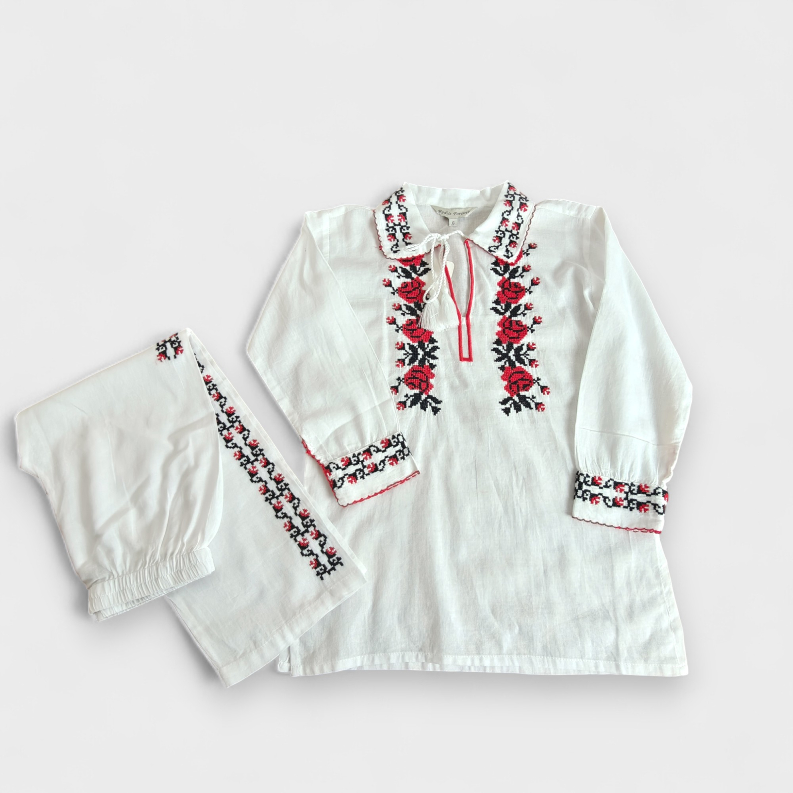 Culoare: alb cu broderie rosu si neagra