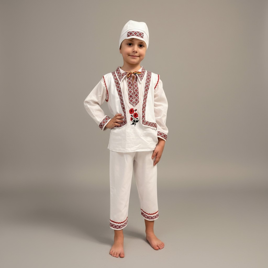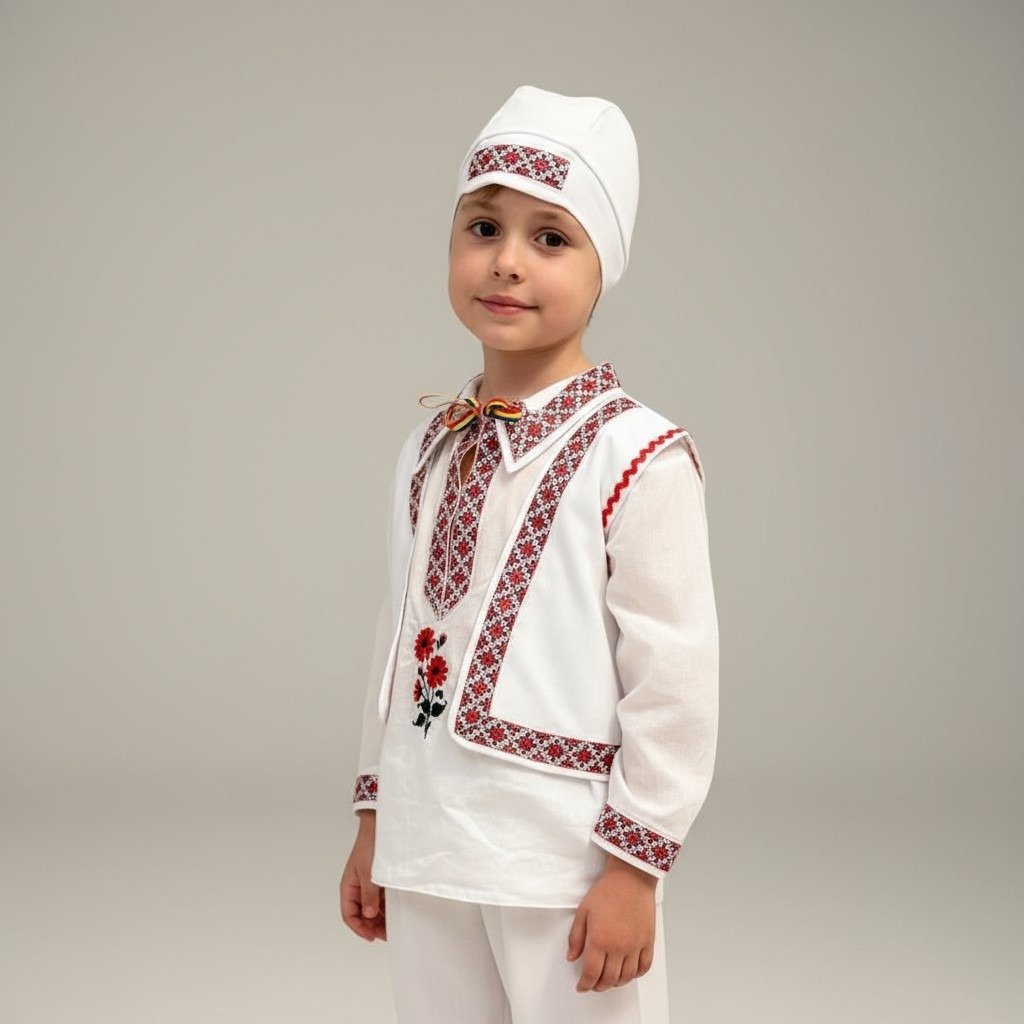 Compleu traditional baieti Rares compus din ie, caciulita si pantalon.