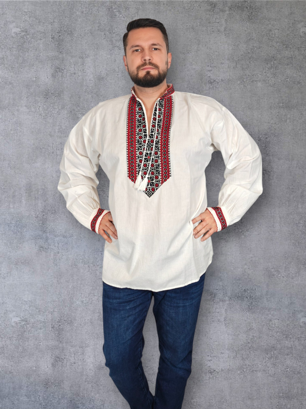 Culoare: alb cu broderie rosu si negru