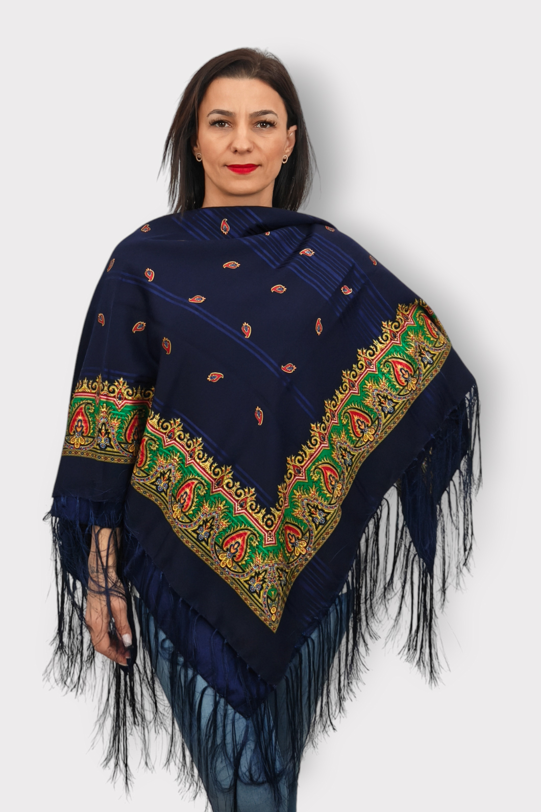Un accesoriu extrem de cautat, datorita imprimeului spectaculos. Este decorat cu franjuri.