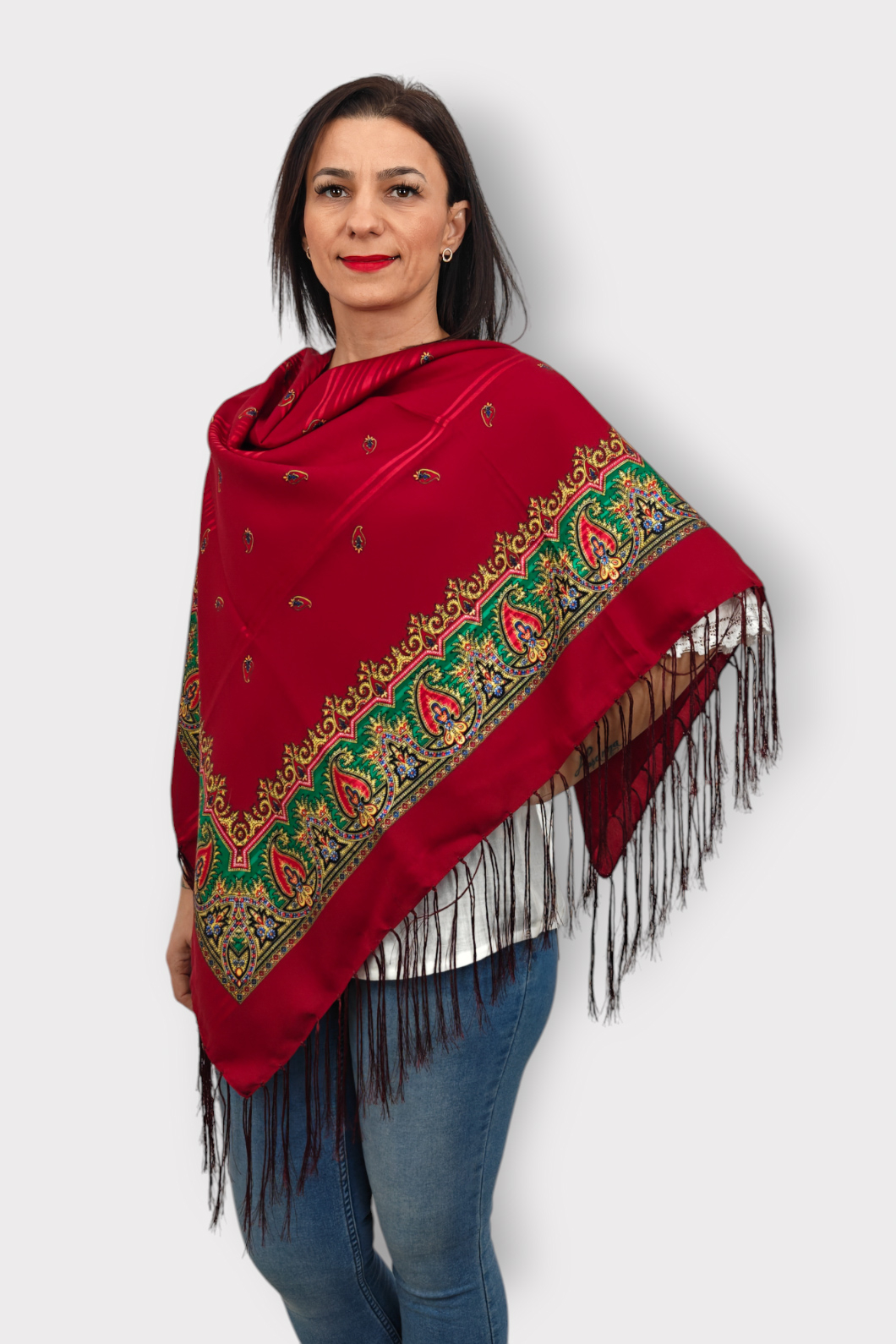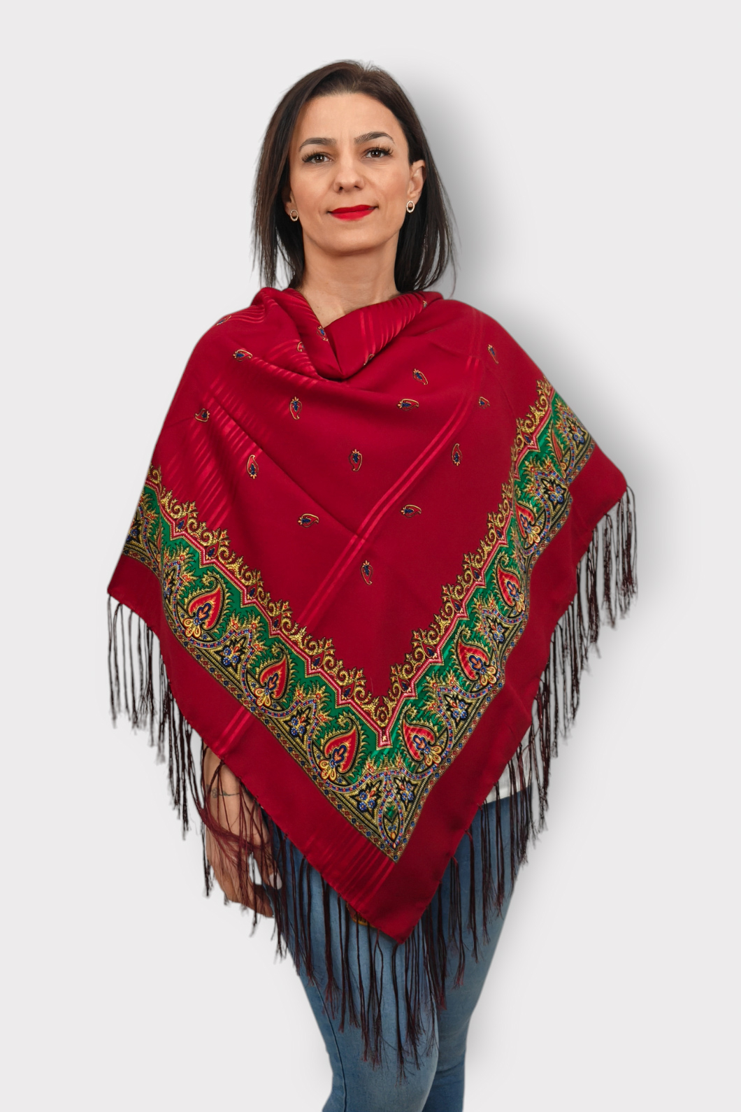Un accesoriu extrem de cautat, datorita imprimeului spectaculos. Este decorat cu franjuri.
