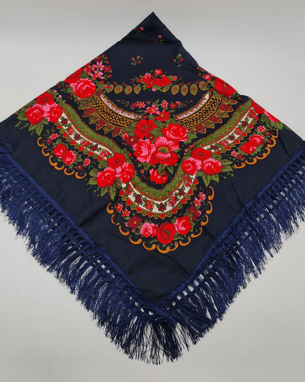 Batic mare din vascoza fina si franjuri din matase cu imprimeu etno.