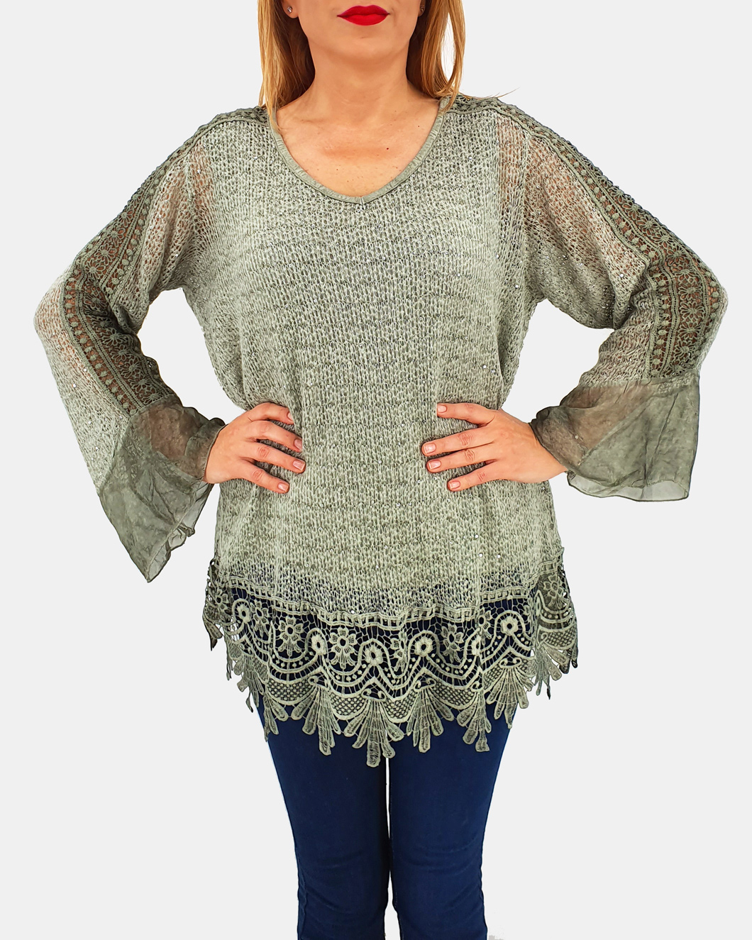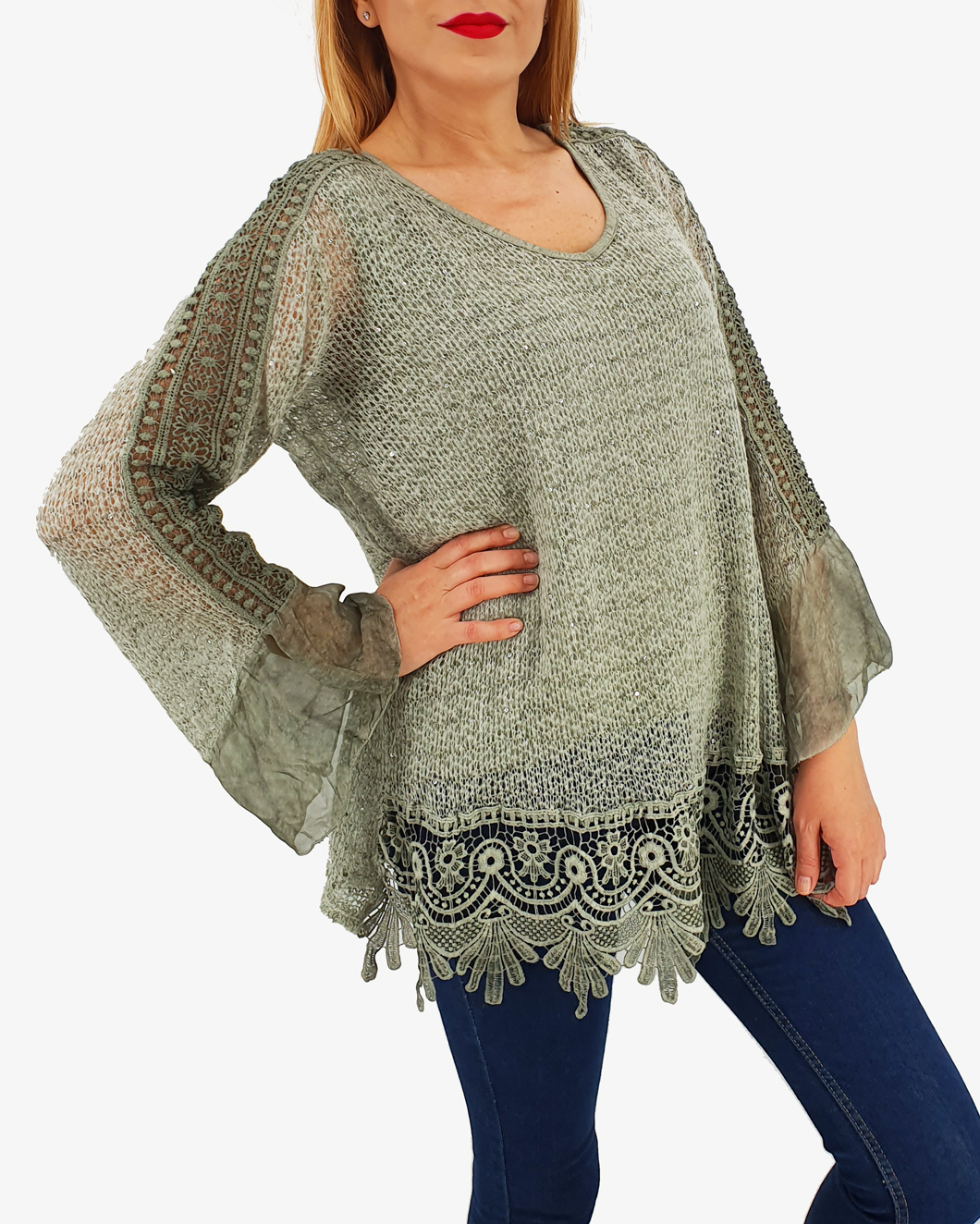 Bluza din casmir cu dantela. Material usor si placut la atingere.