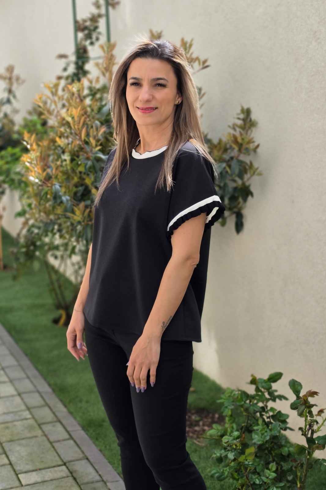 Bluza racoroasa cu maneca scurta. Bluza vaporoasa si lejera la purtat.