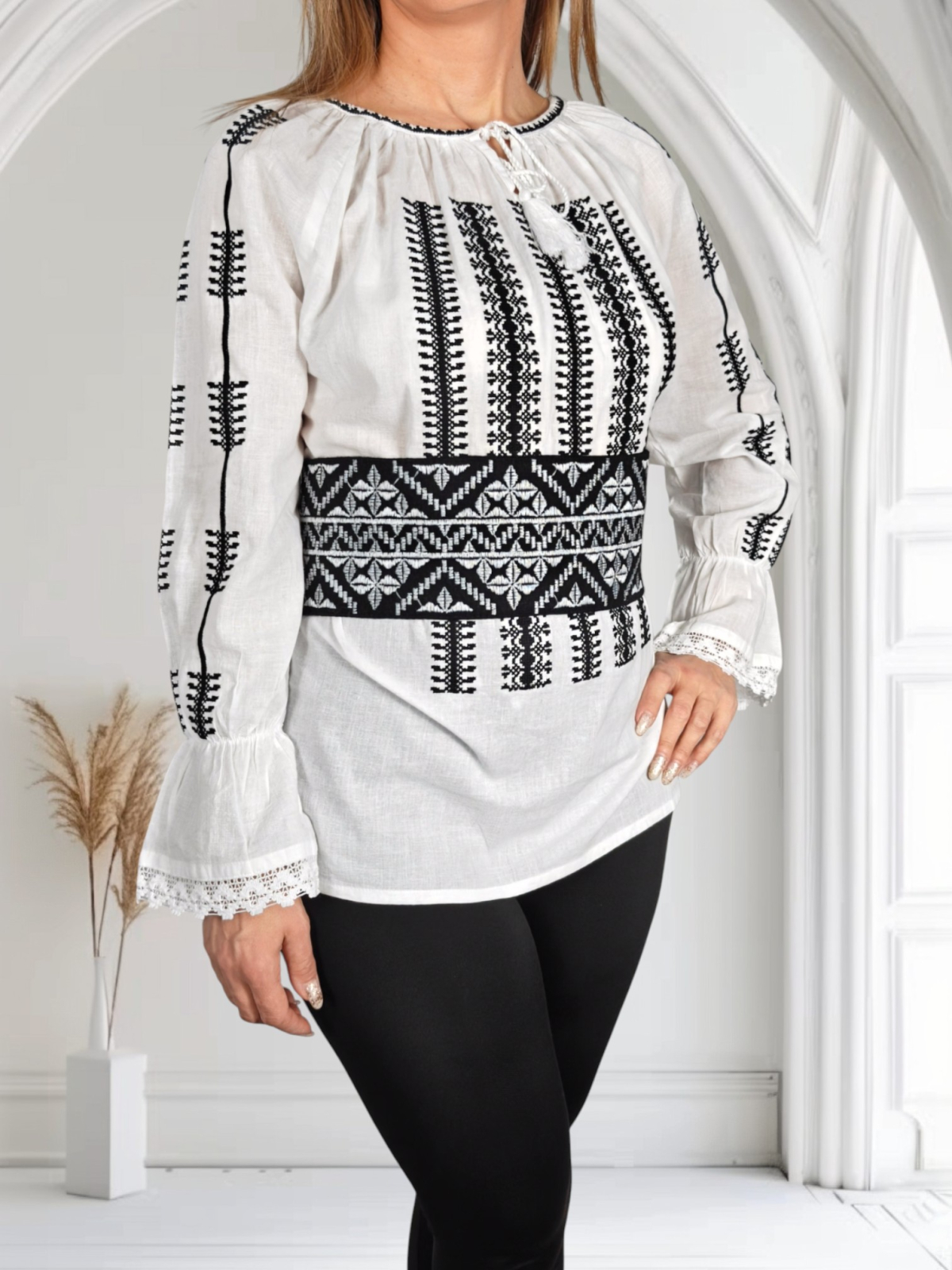 Culoare: negru cu broderie crem