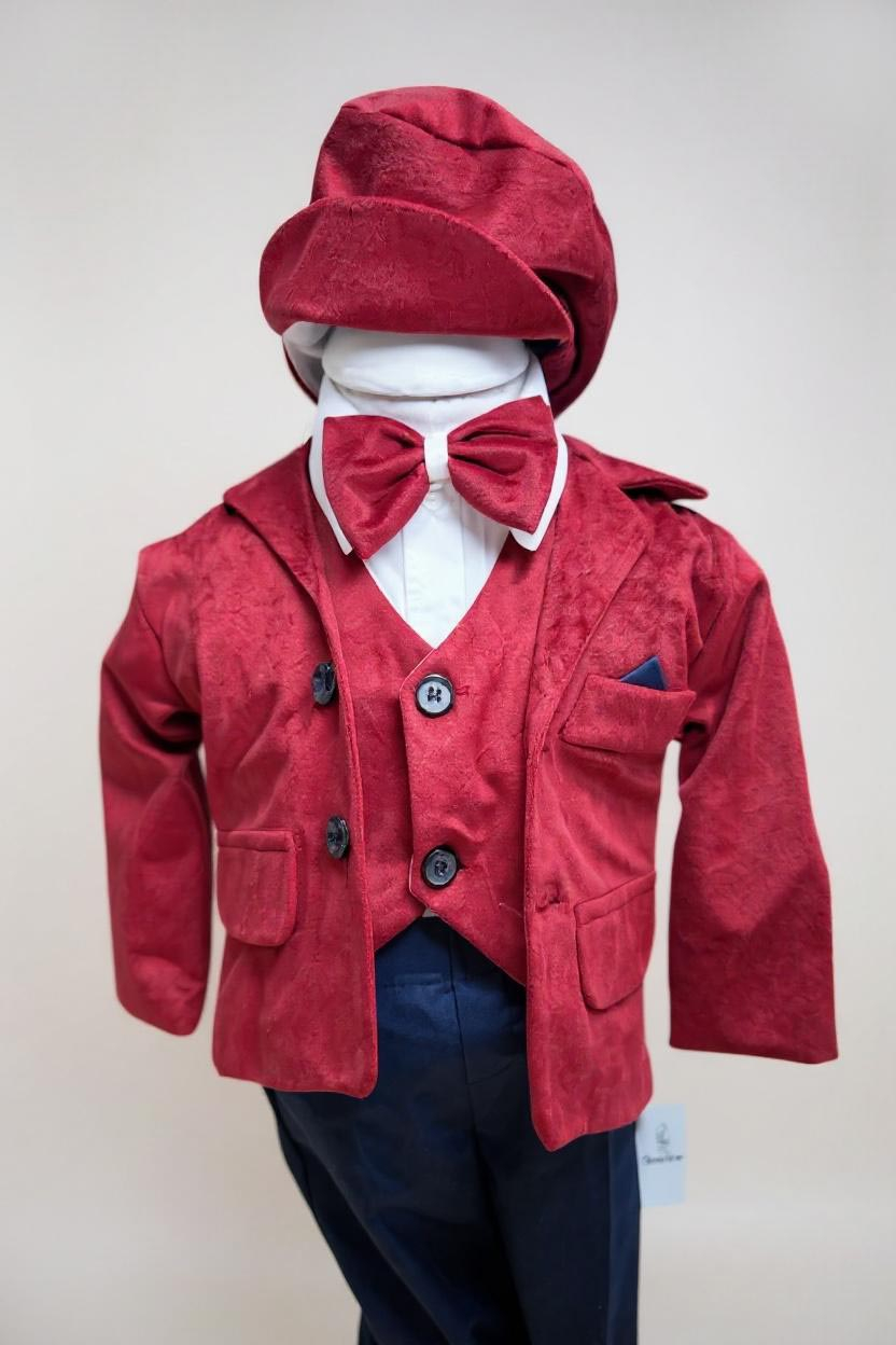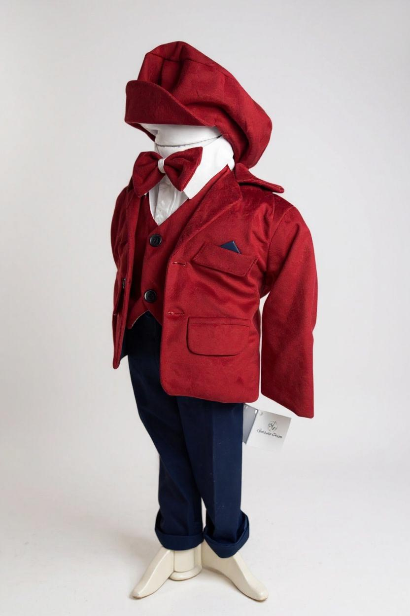 Material - sacoul, vesta, caciula si papionul - catifea ; Pantalon si Camasa - bumbac!