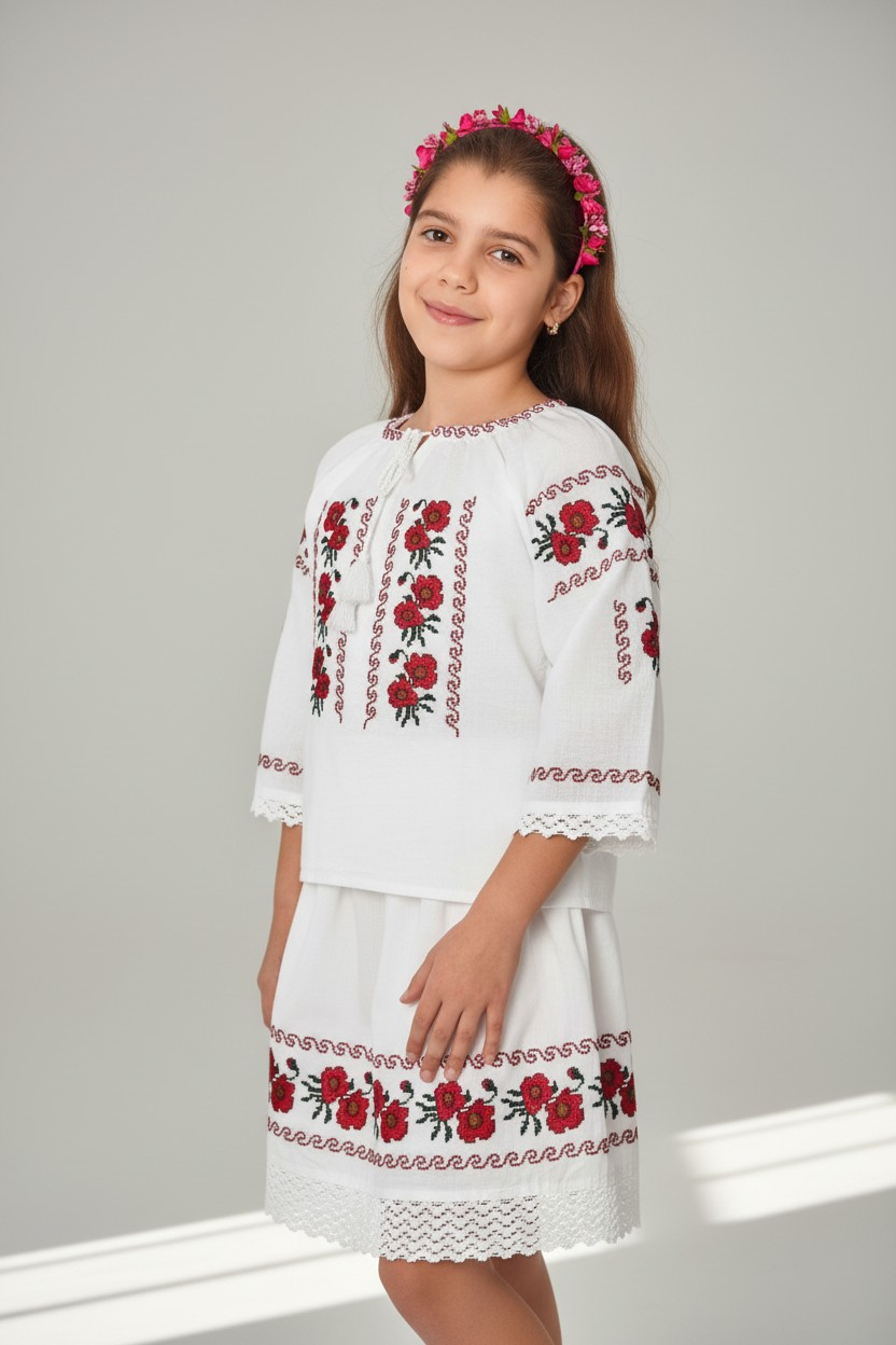 Compleu traditional fetita. PREVAZUTA CU MANECA 3/4