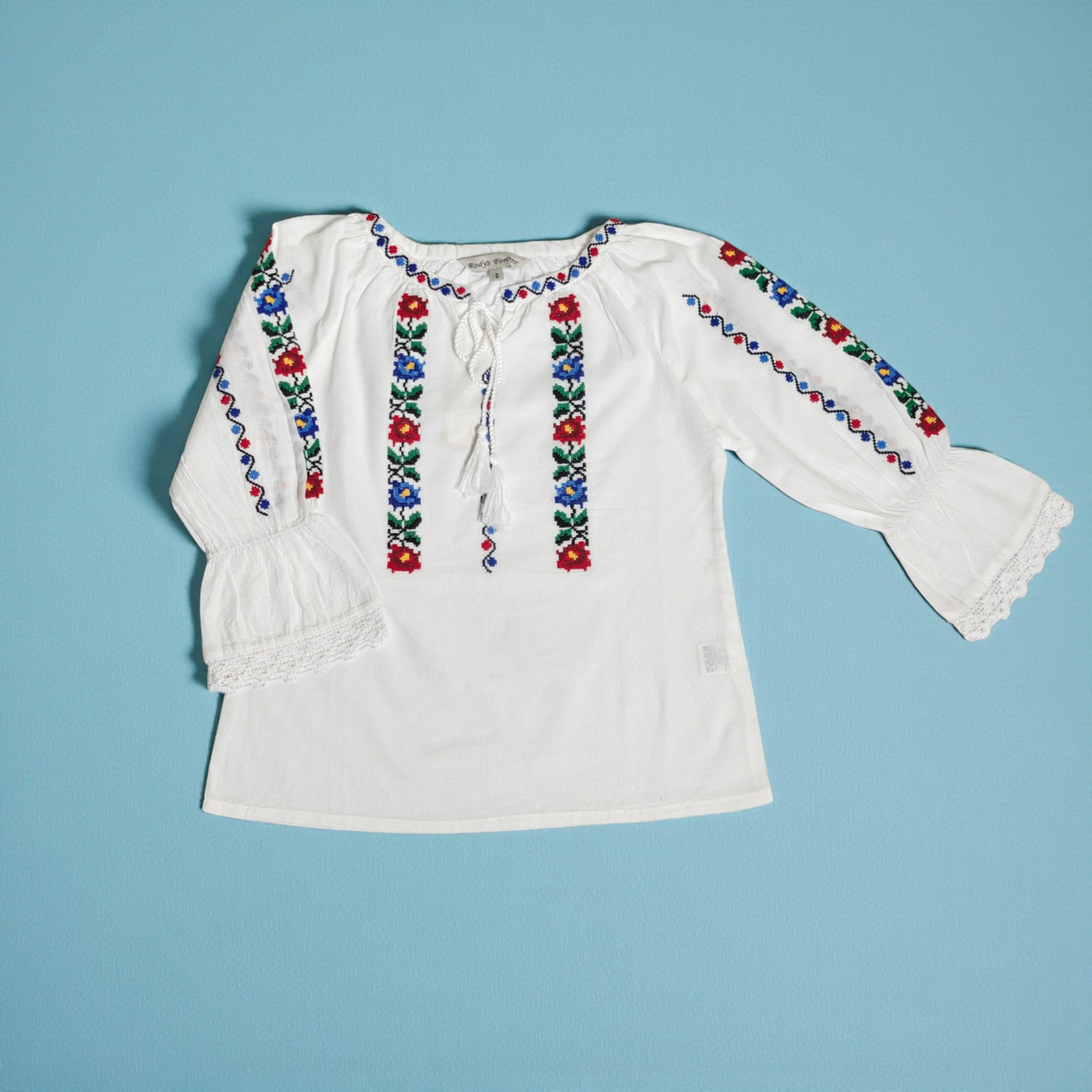 Culoare: alb cu broderie colorata