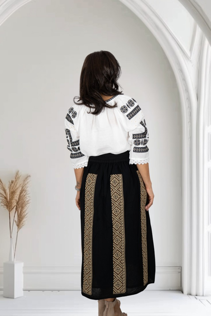 Fusta lejera de purtat in orice moment al zilei cu elastic la spate si jupa.