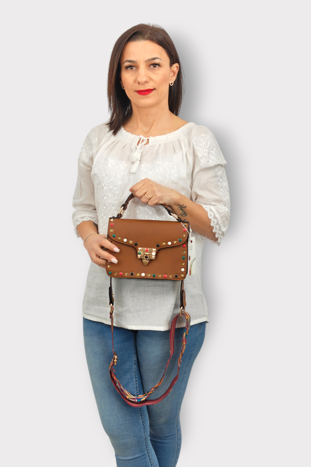 - In interior: 2 buzunare deschise, 1 buzunar cu fermoar, bucunar la spatele gentii