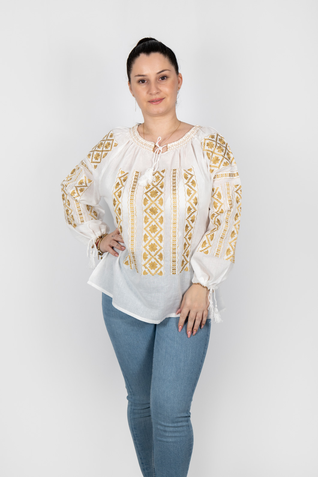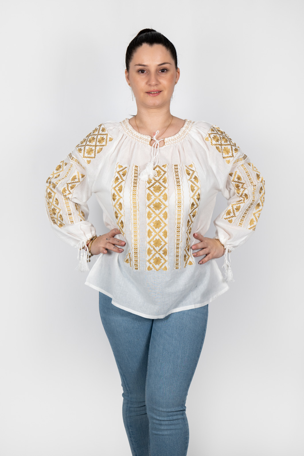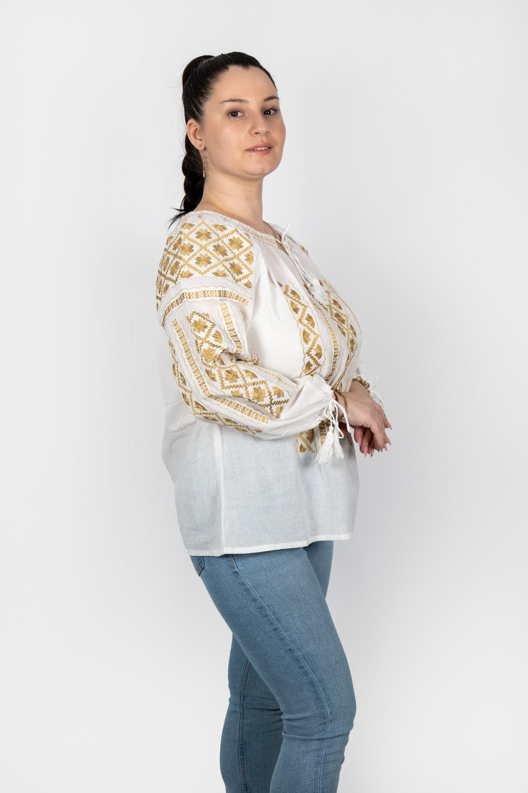 Ie din panza de bumbac 100%, Broderie cusuta la masina