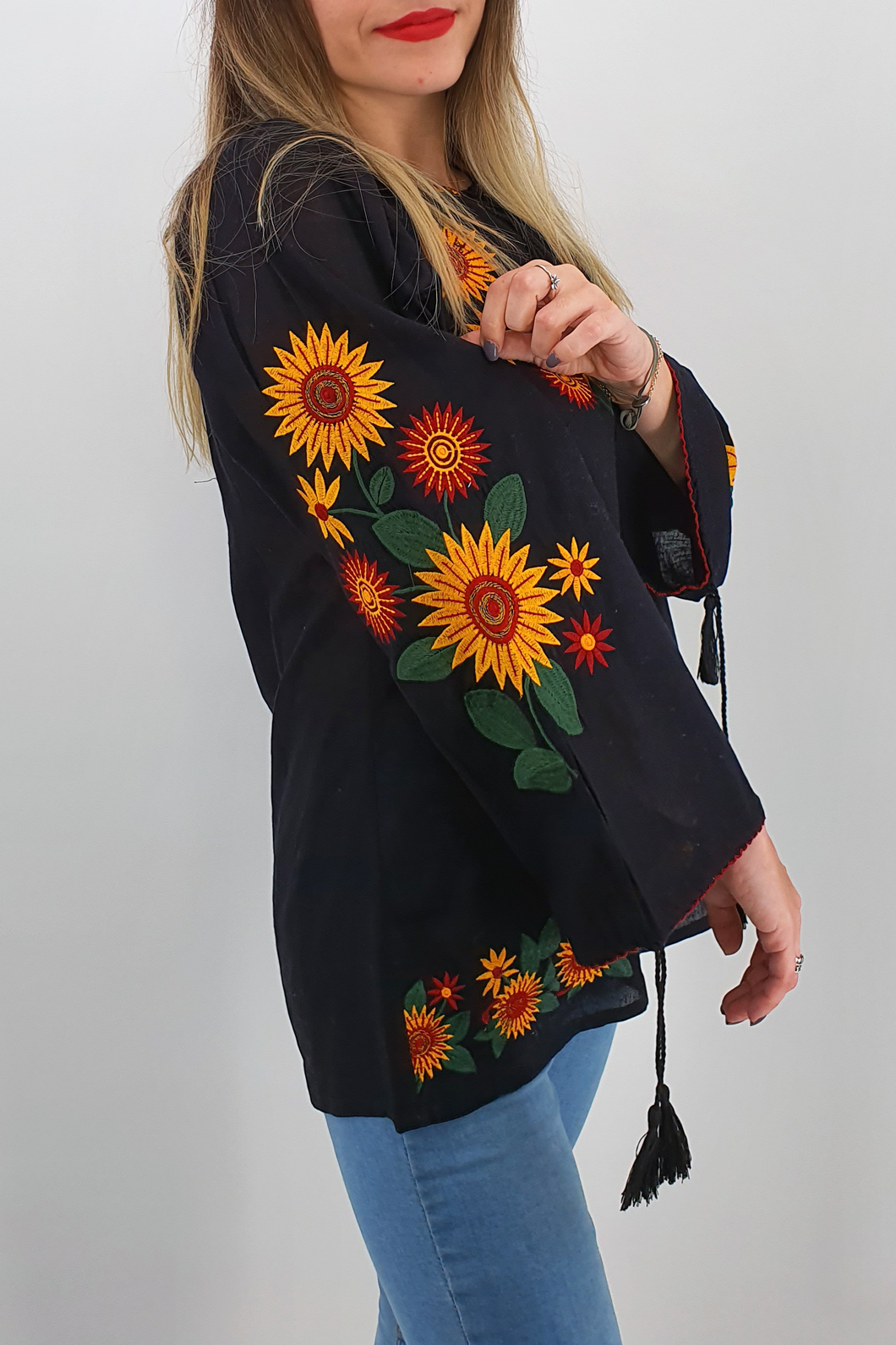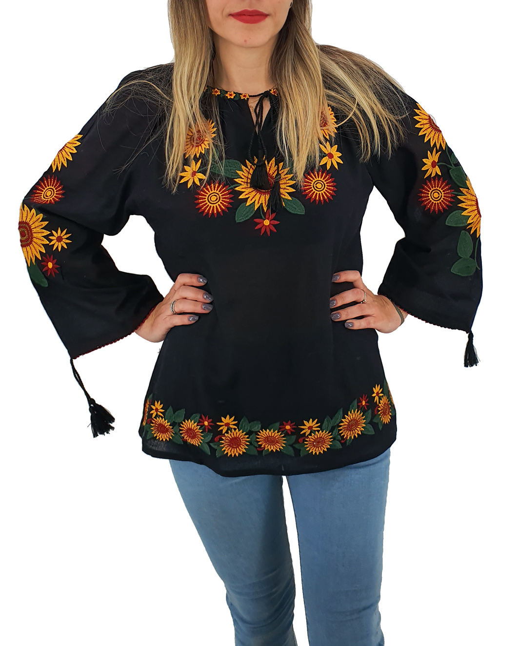 Ie din panza de bumbac 100%, Broderie cusuta la masina.