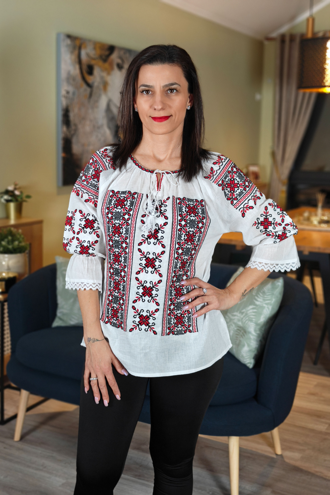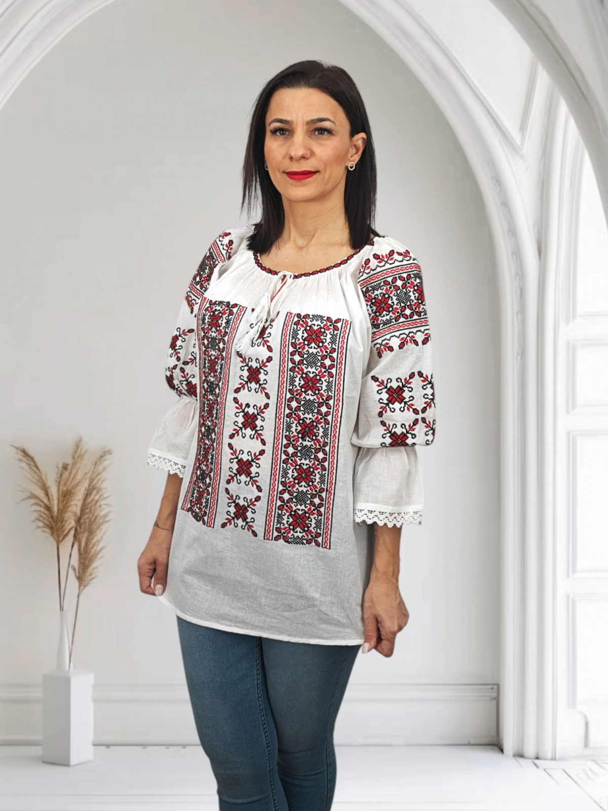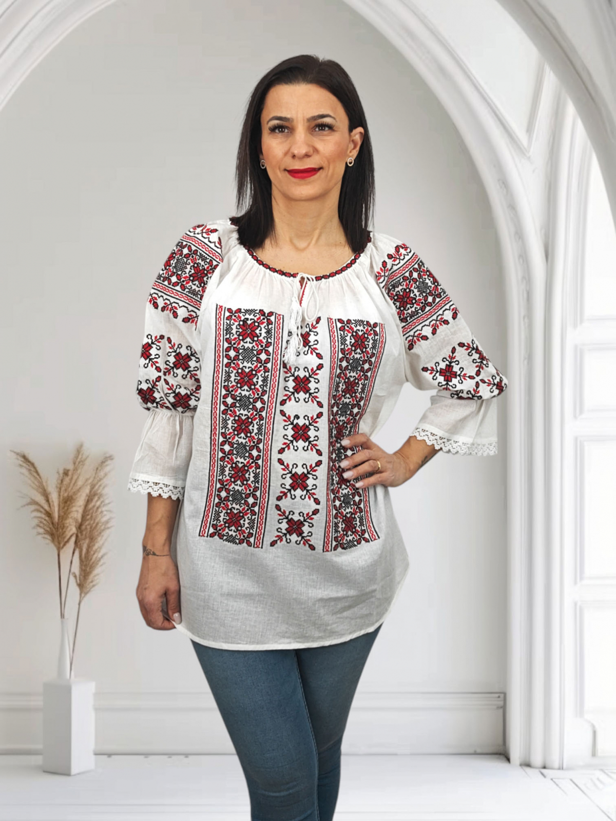 Ie din panza de bumbac 100%, Broderie cusuta la masina.