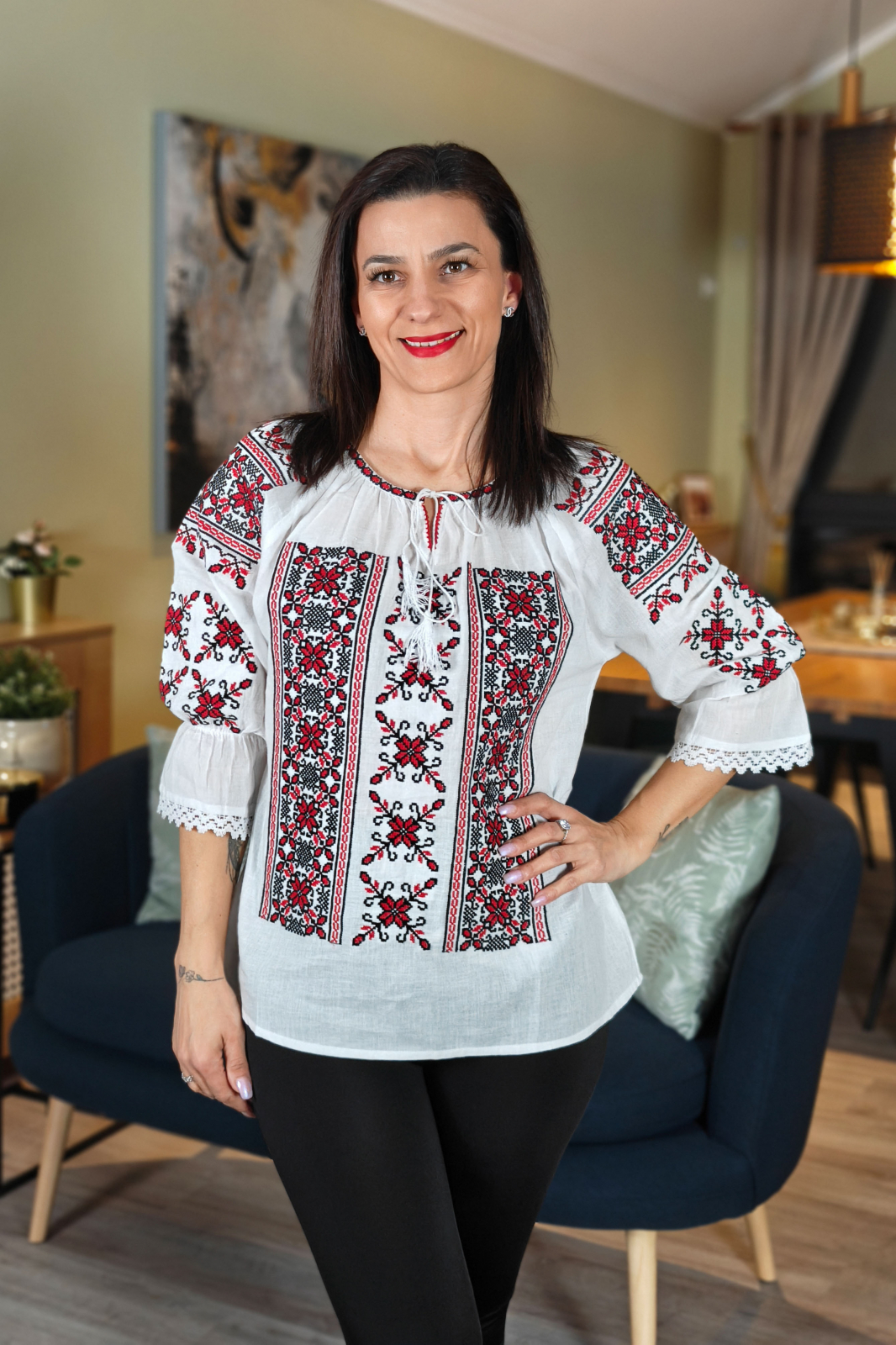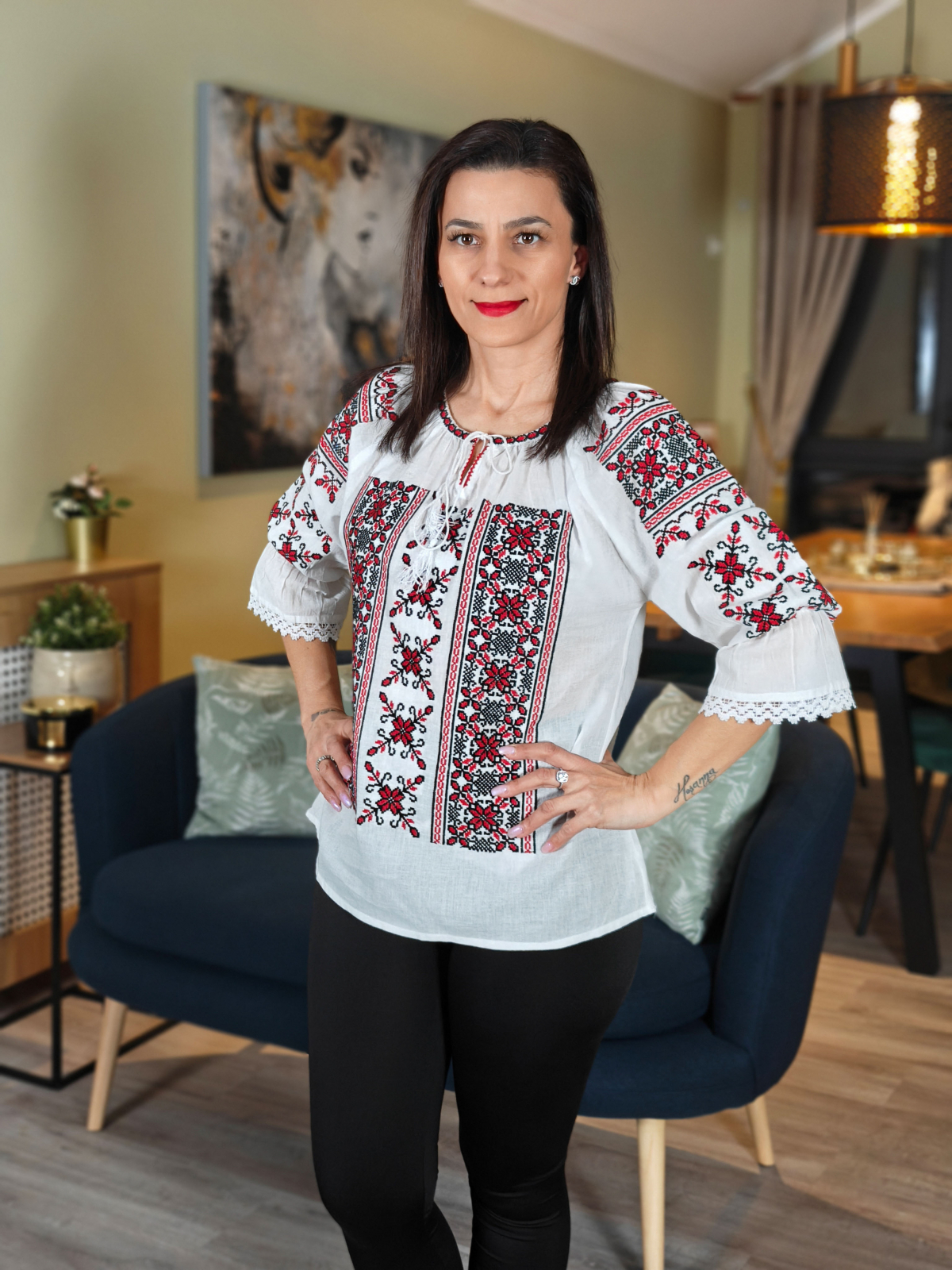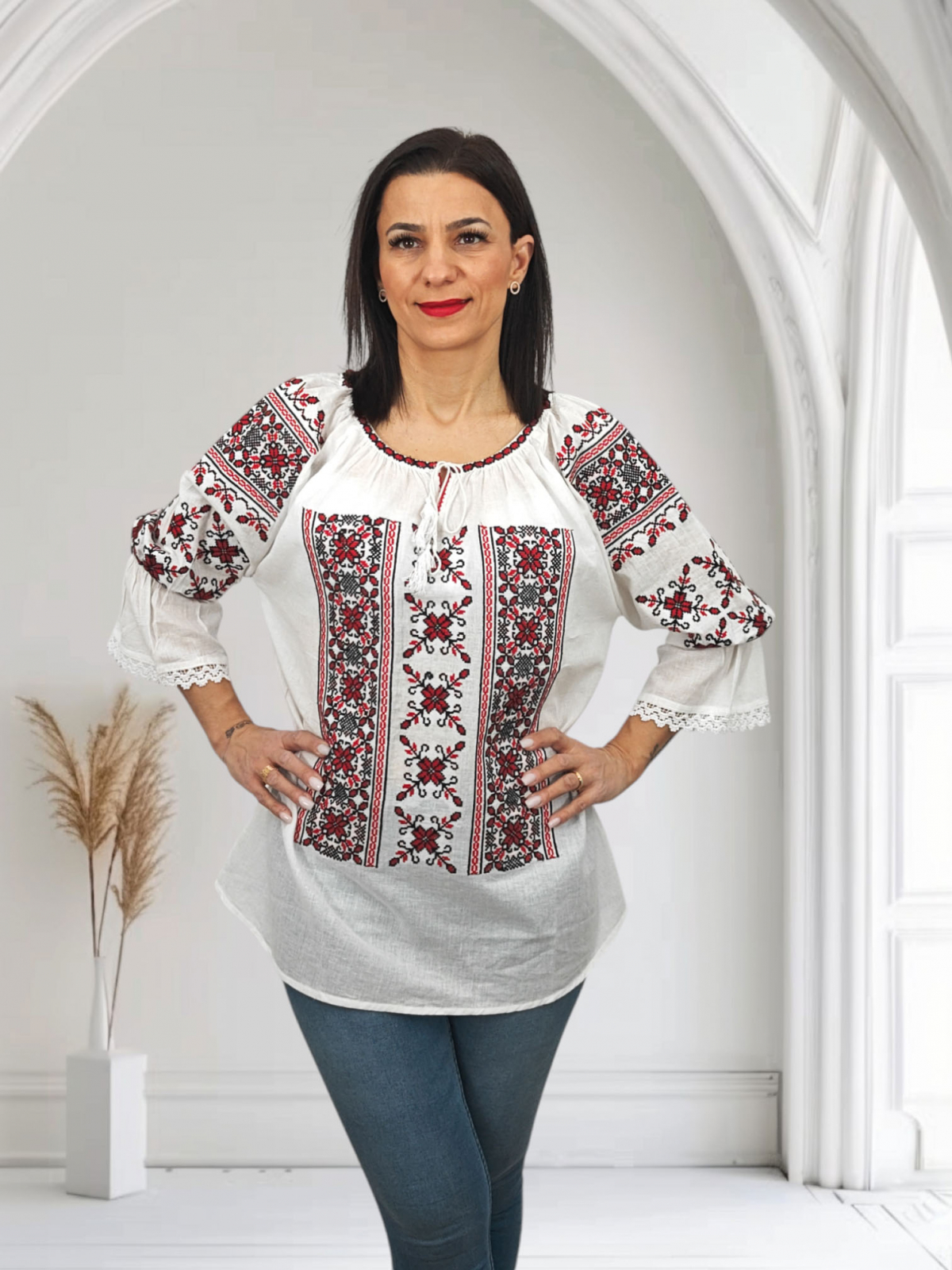 Ie din panza de bumbac 100%, Broderie cusuta la masina.