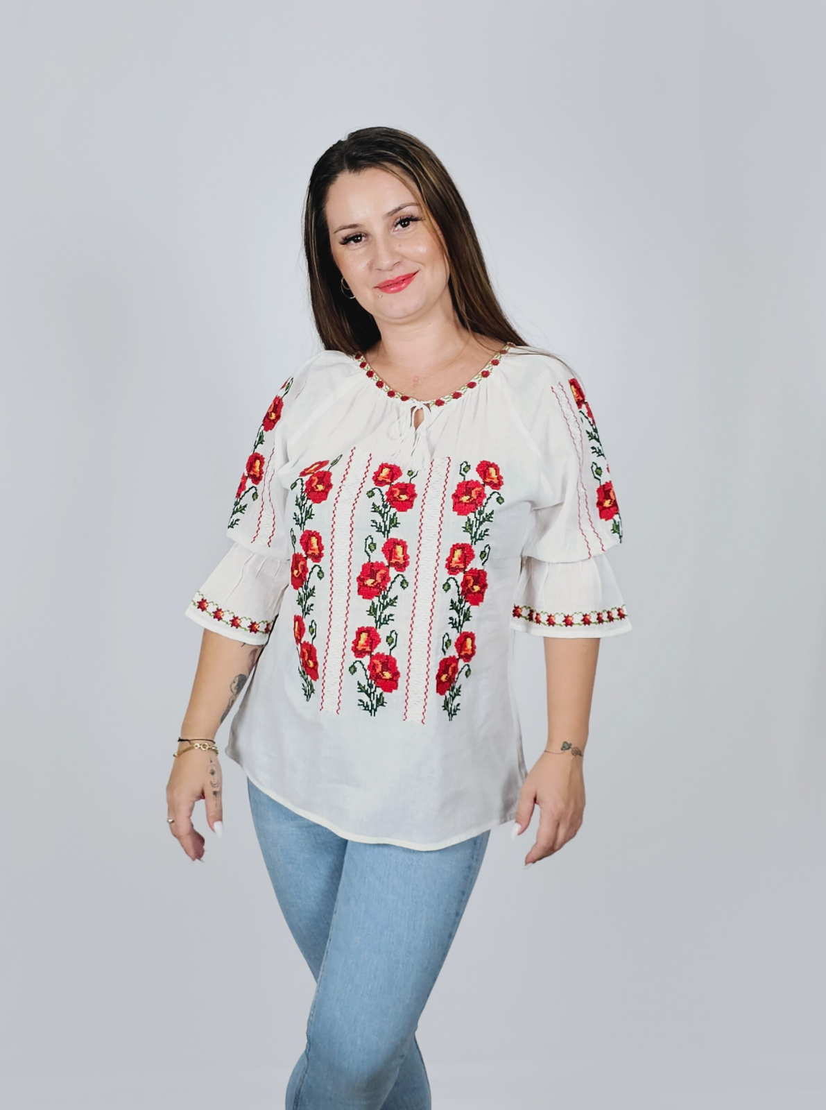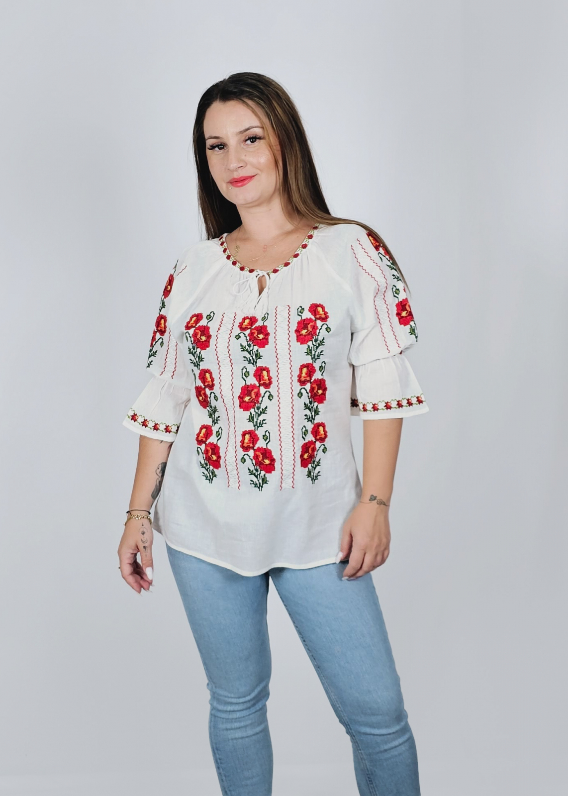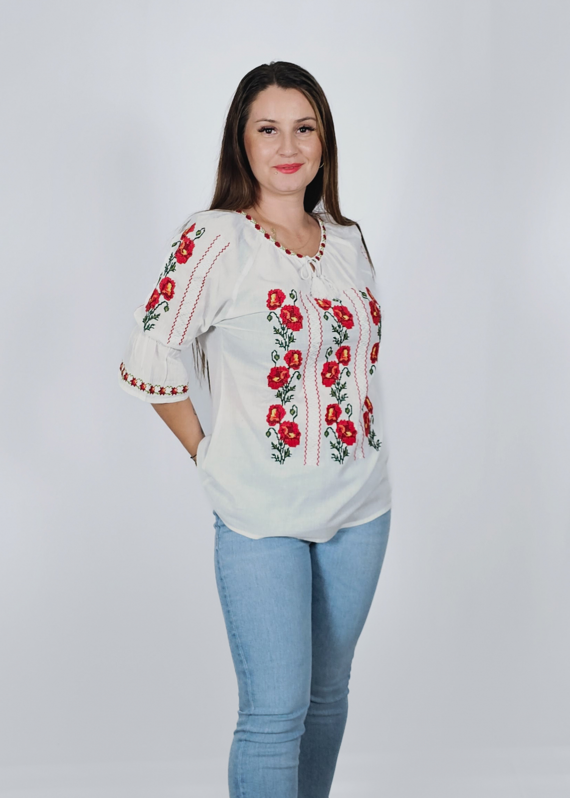 Ie din panza de bumbac 100%. Broderie cusuta la masina.
