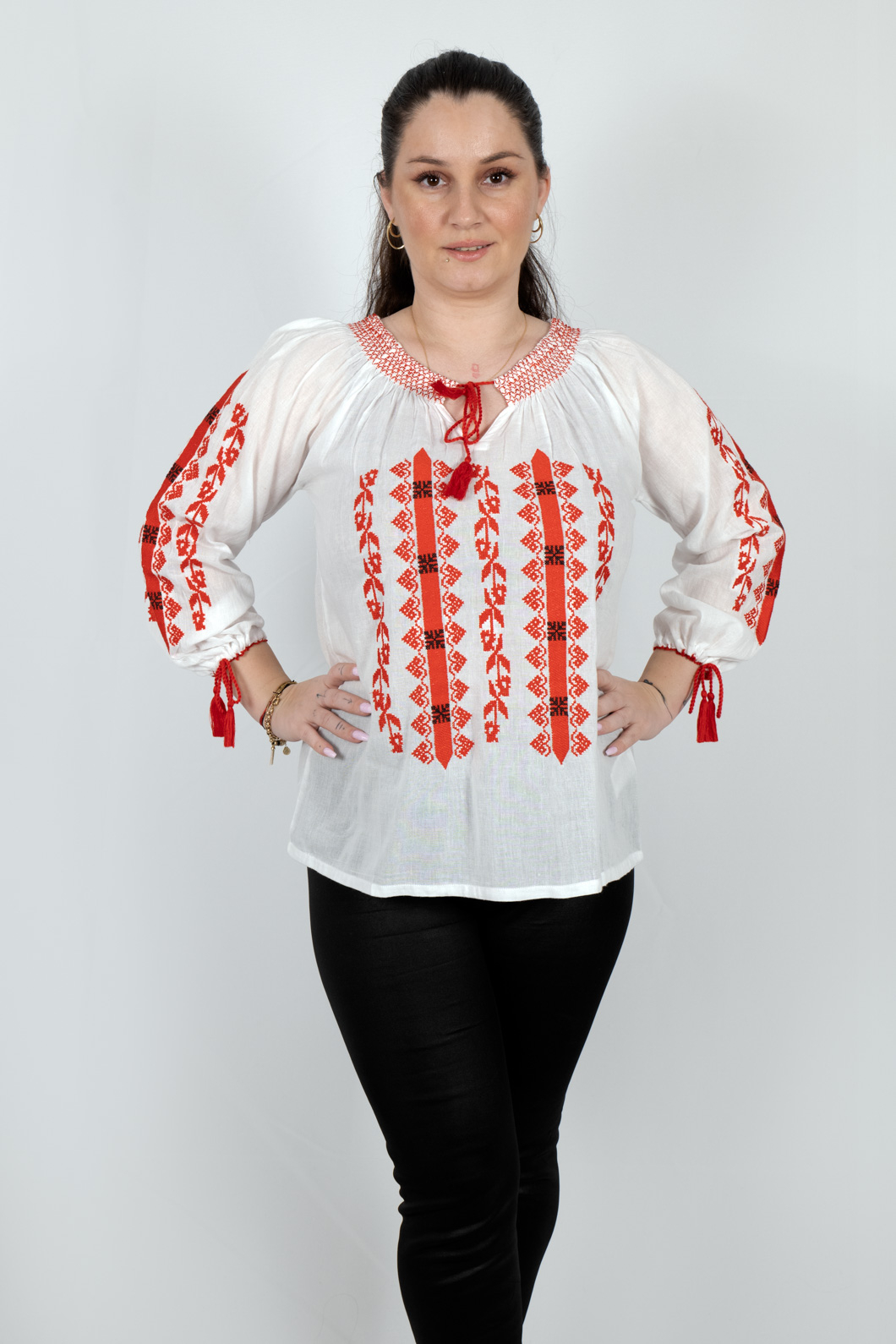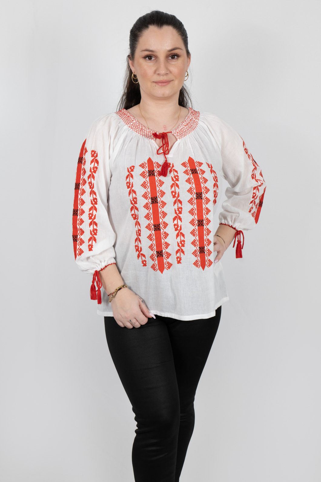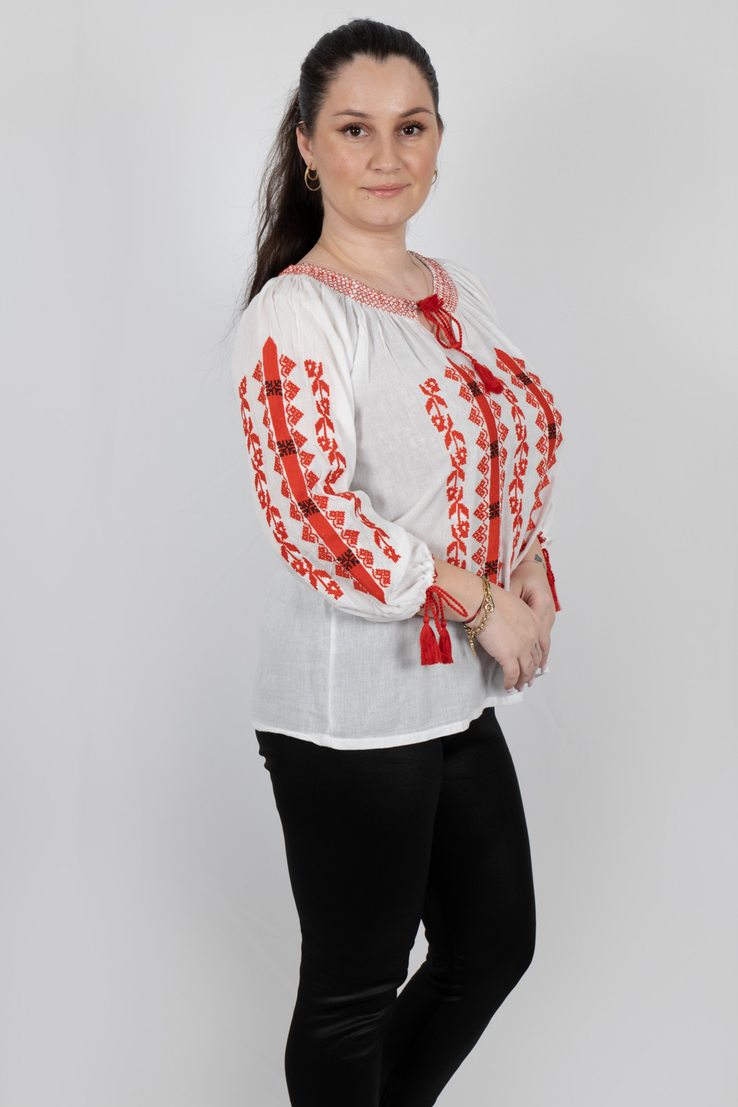 Culoare: alb cu broderie cu rosie