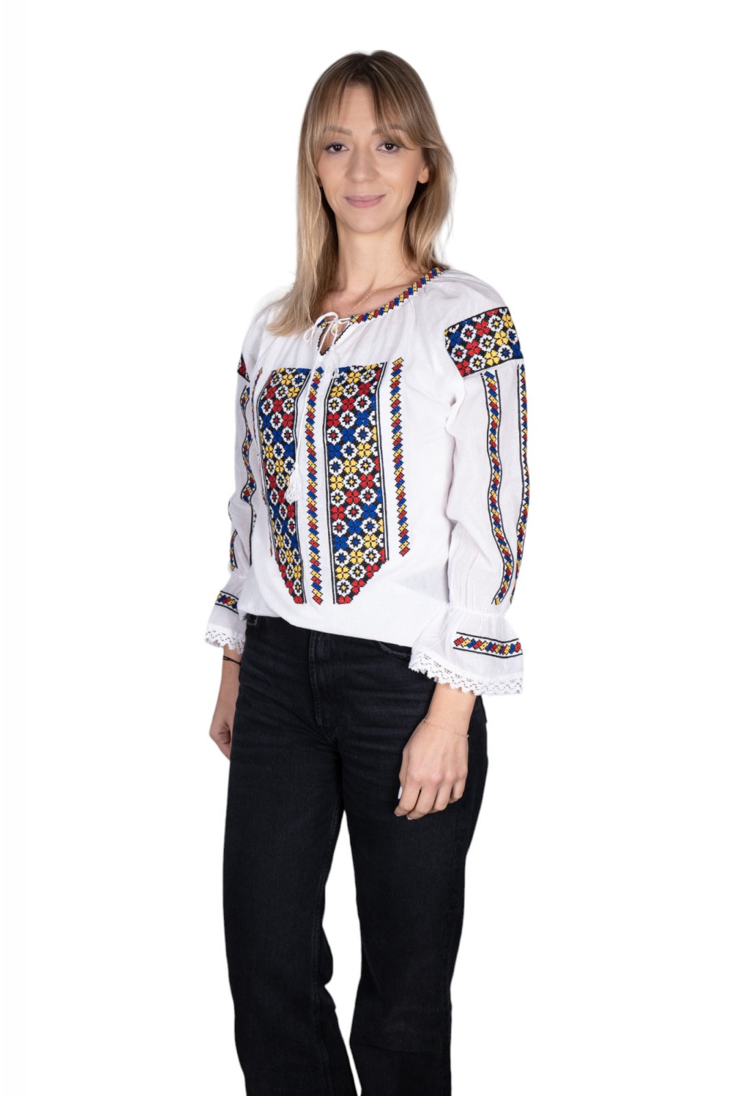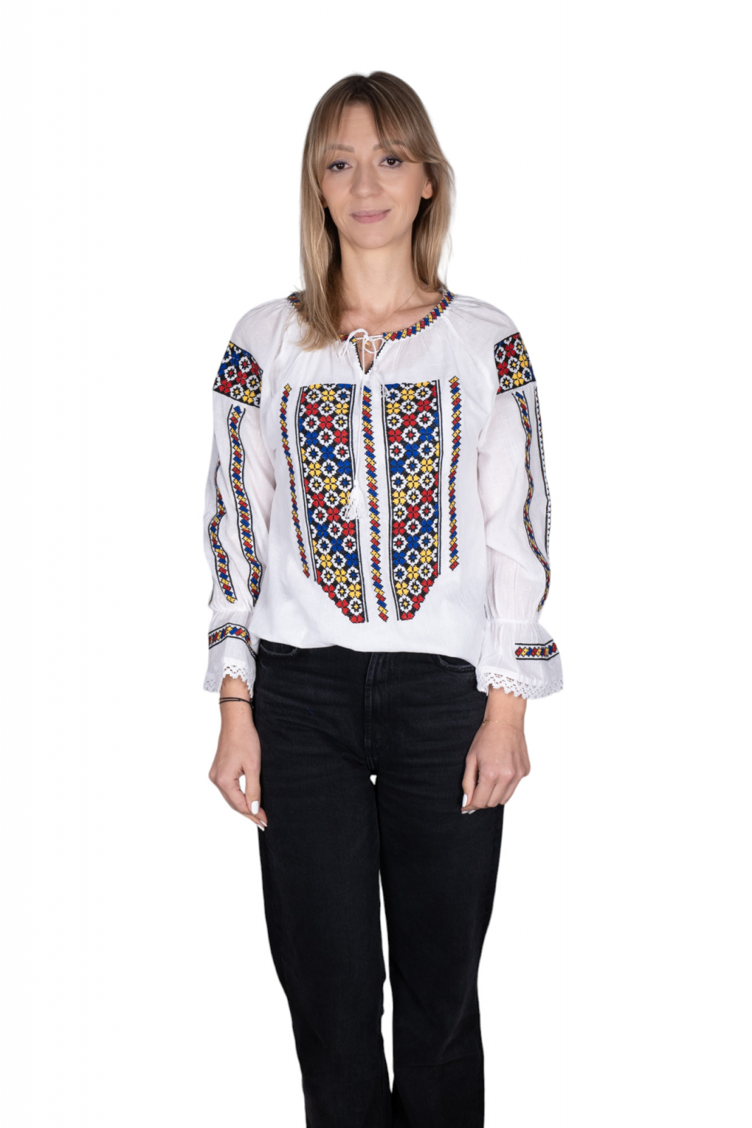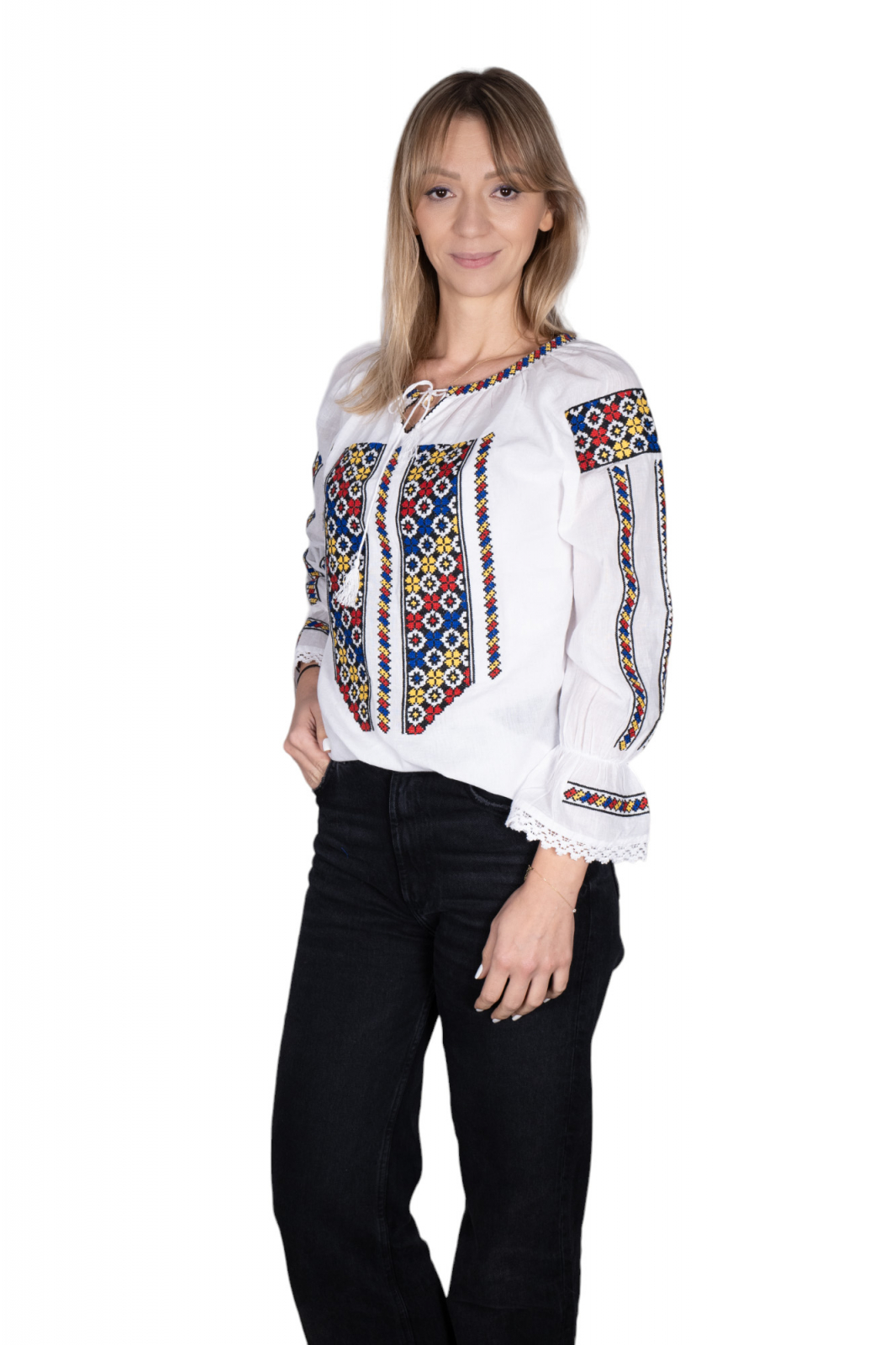 ✔️Culoare: alb cu broderie rosu, galben si albastru