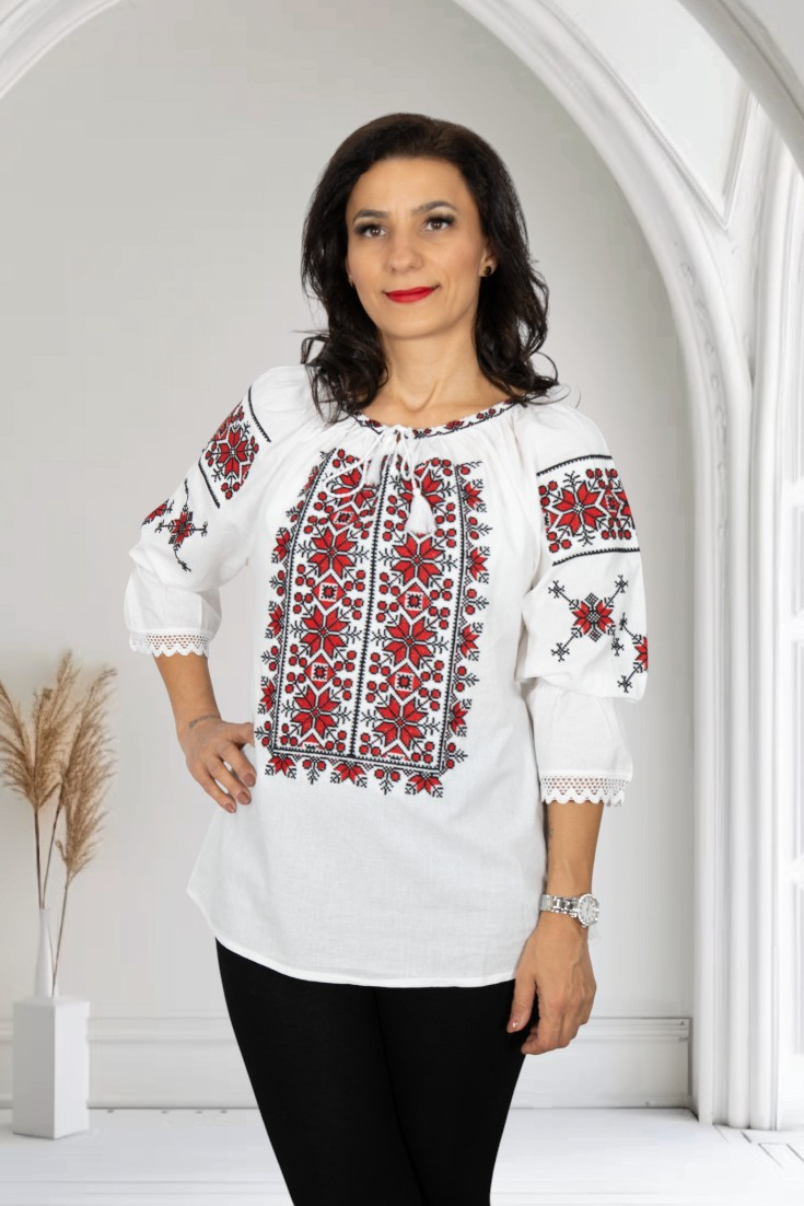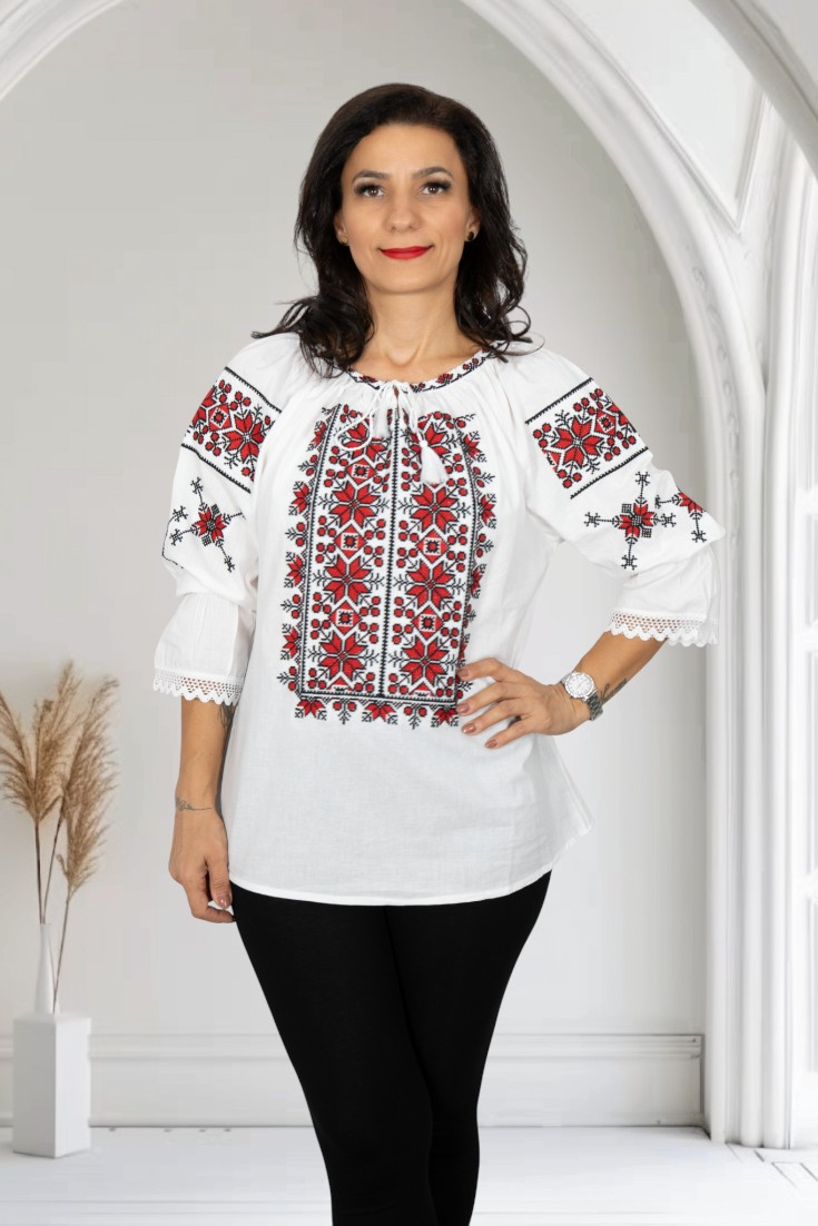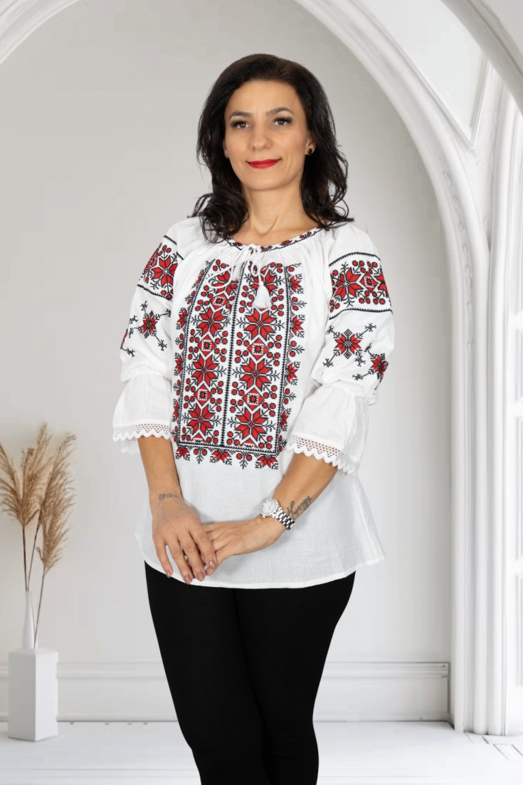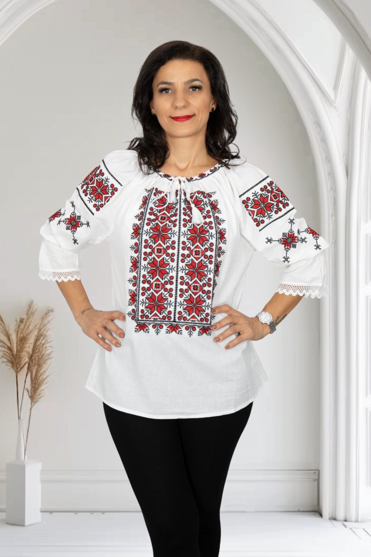 Culoare: alb cu broderie rosie si neagra