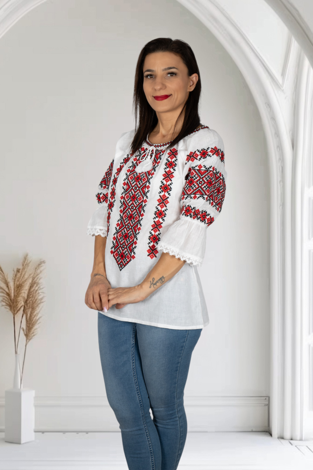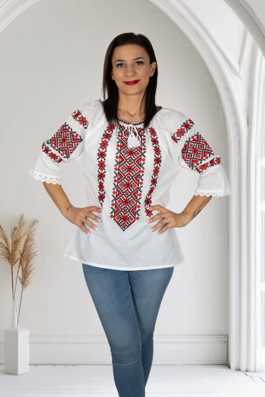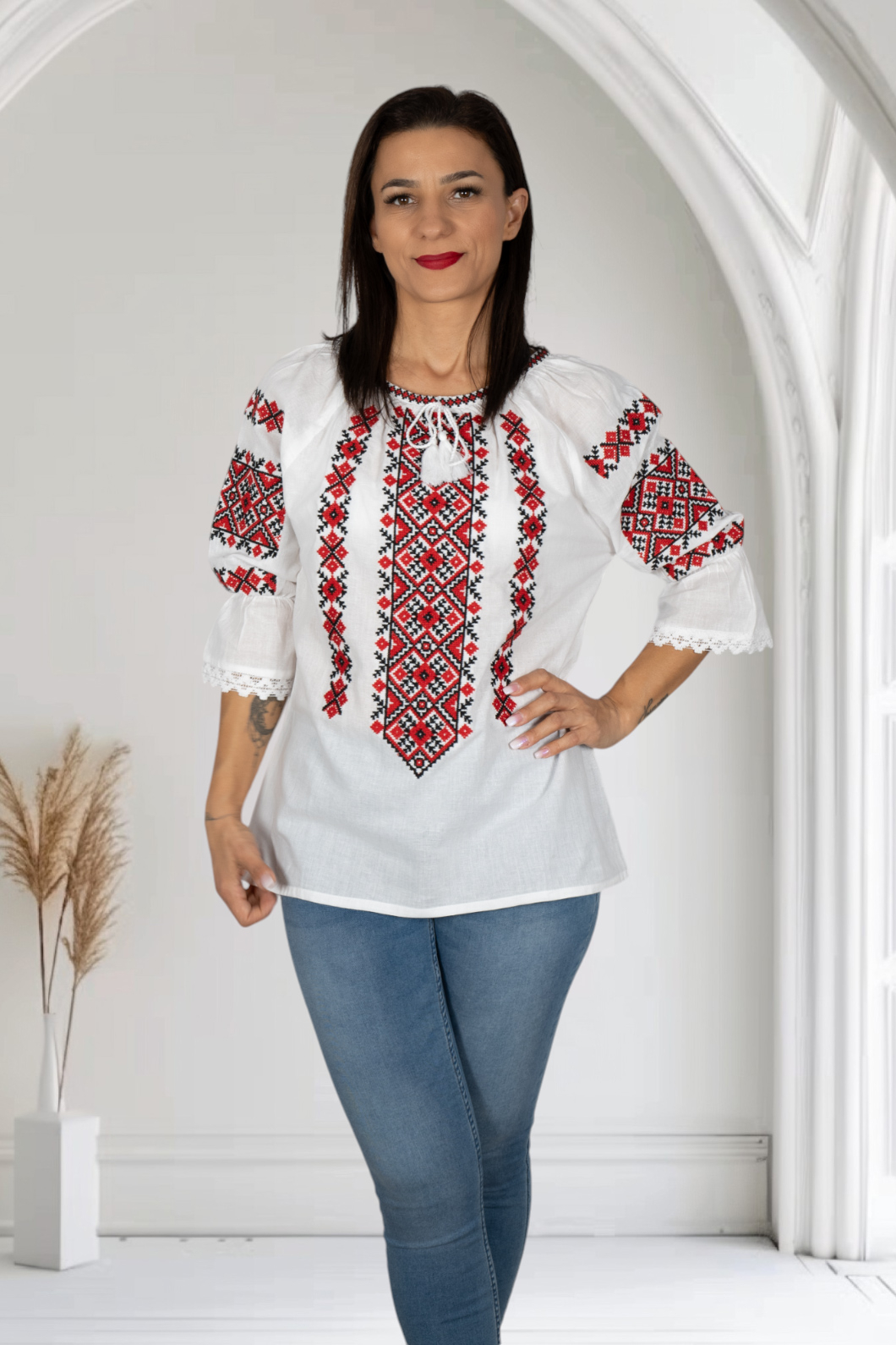 ✔️Ie din panza de bumbac 100%. Broderie cusuta la masina.