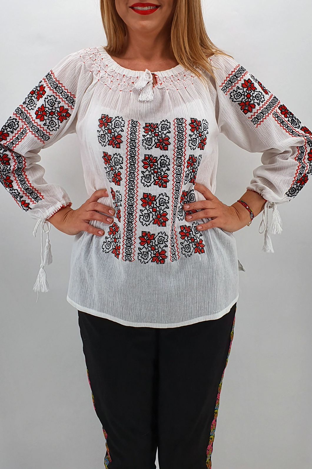 Ie din panza de bumbac 100%, Broderie cusuta la masina. Maneca lunga!