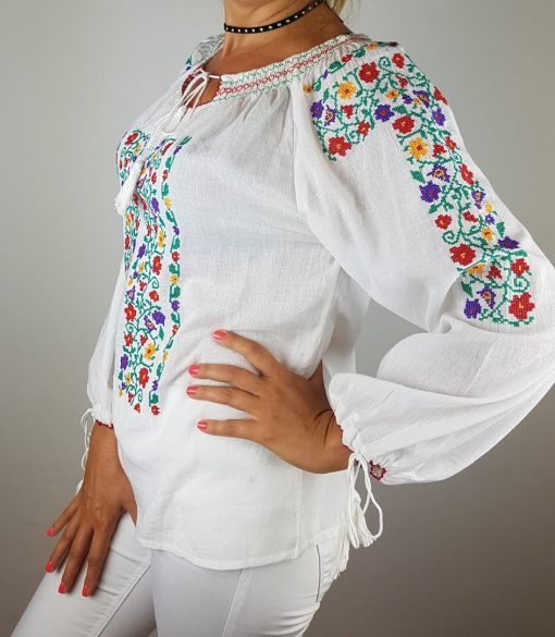 Culoare: alba cu broderie rosie, mov, galben, si verde
