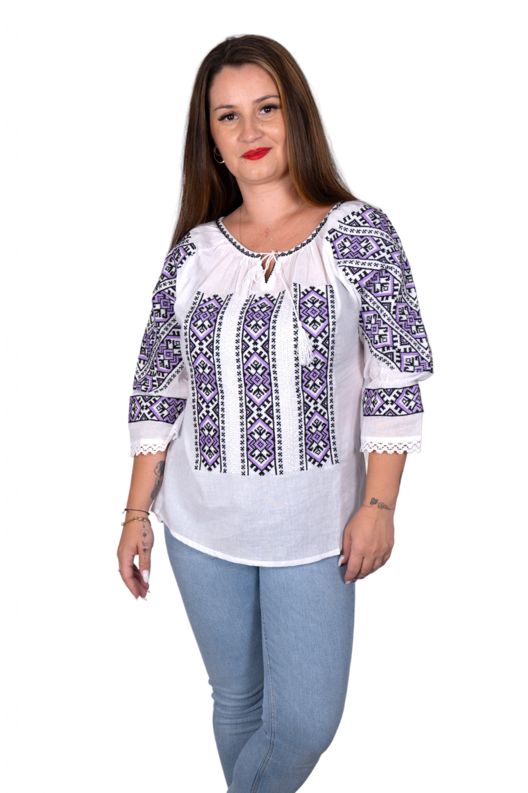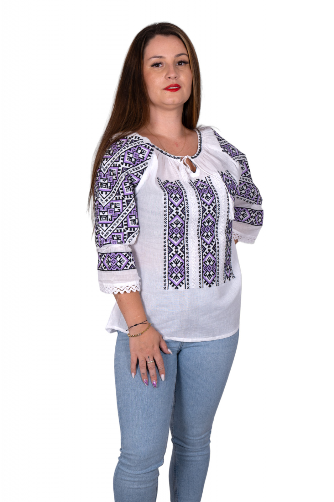 Ie din panza de bumbac 100%, Broderie cusuta la masina.