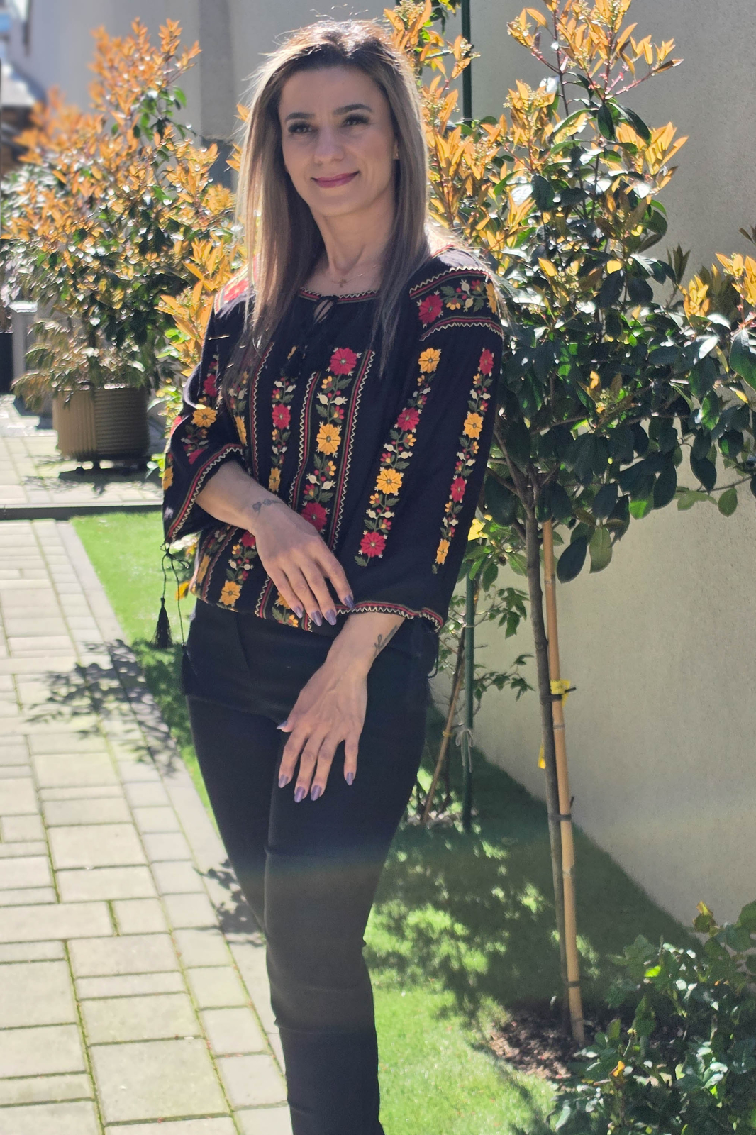 Ia romaneasca cu broderie neagra sau bleumarin, prin culorile inchise reprezinta sobrietate, intelepciune si decenta. Aceste modele de ii traditionale sunt specifice zonei Banatului, in care culorile reprezentative ale broderiei sunt: brun, visiniu, negru, verde inchis.