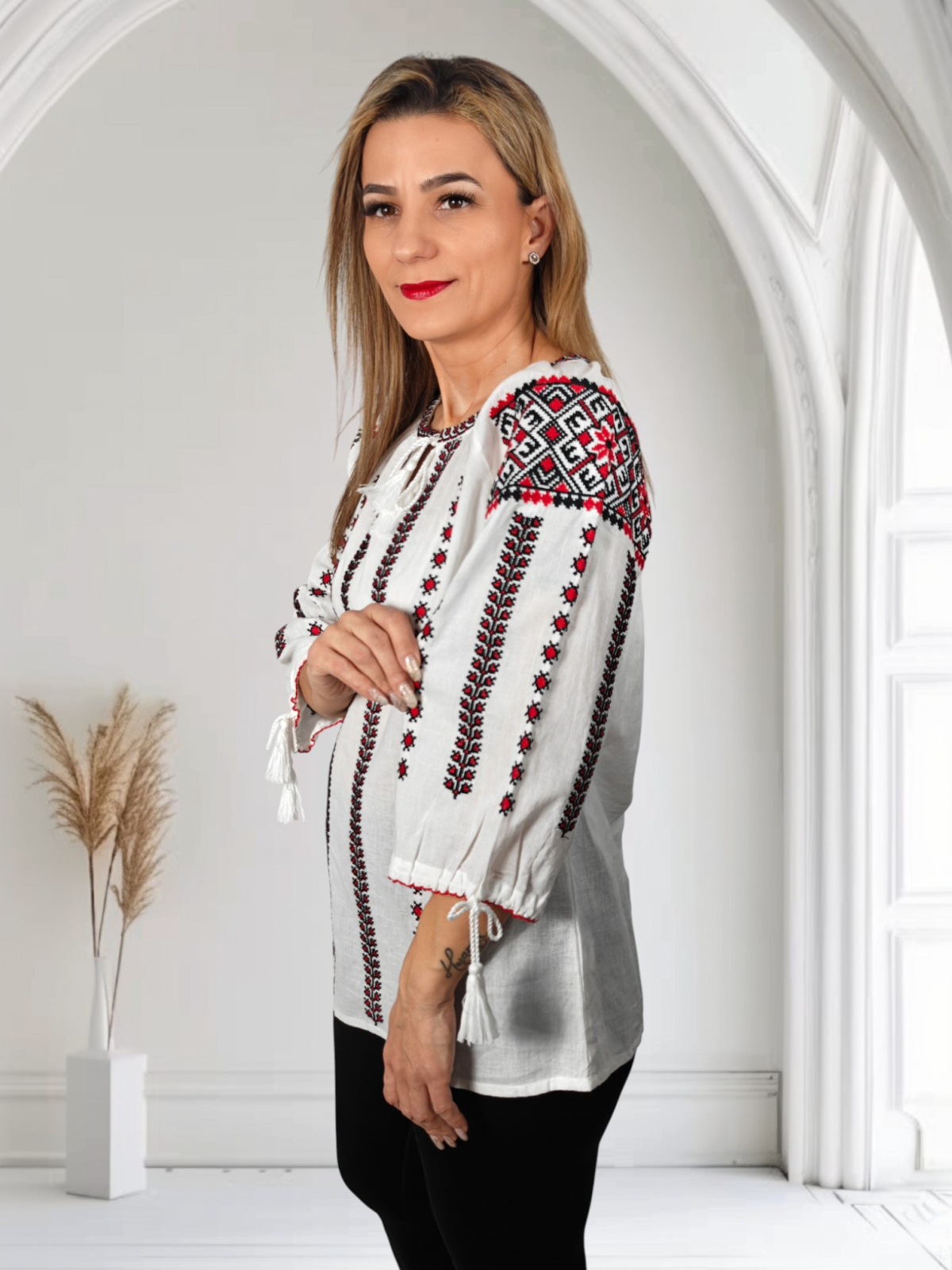 Culoare: Culoare: alb cu broderie rosu si negru