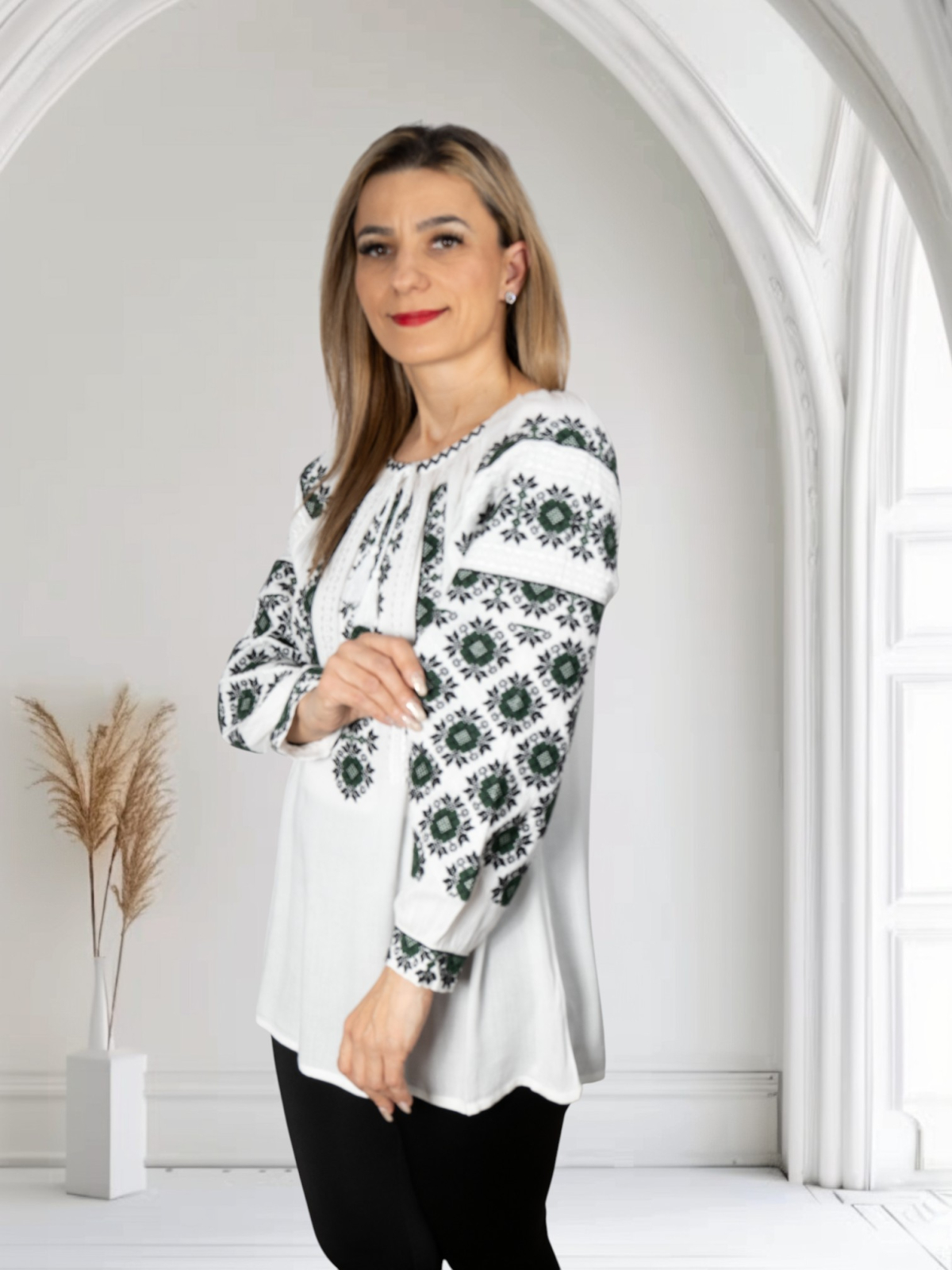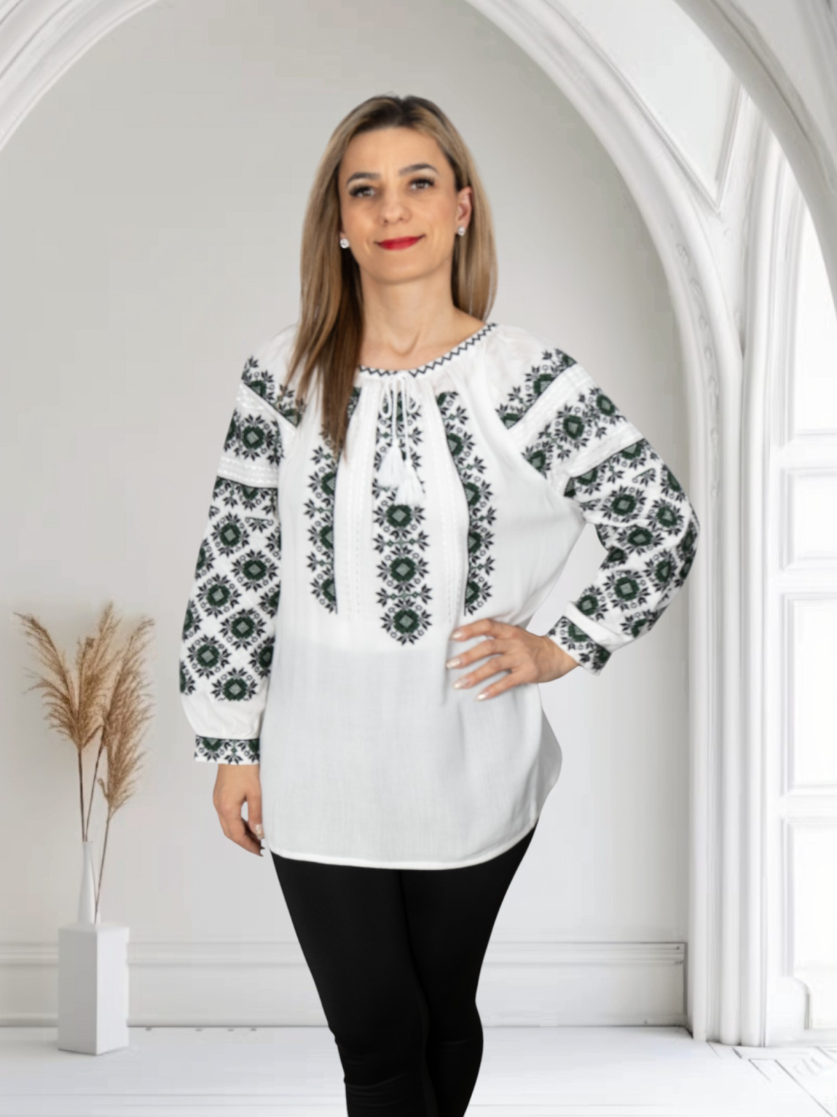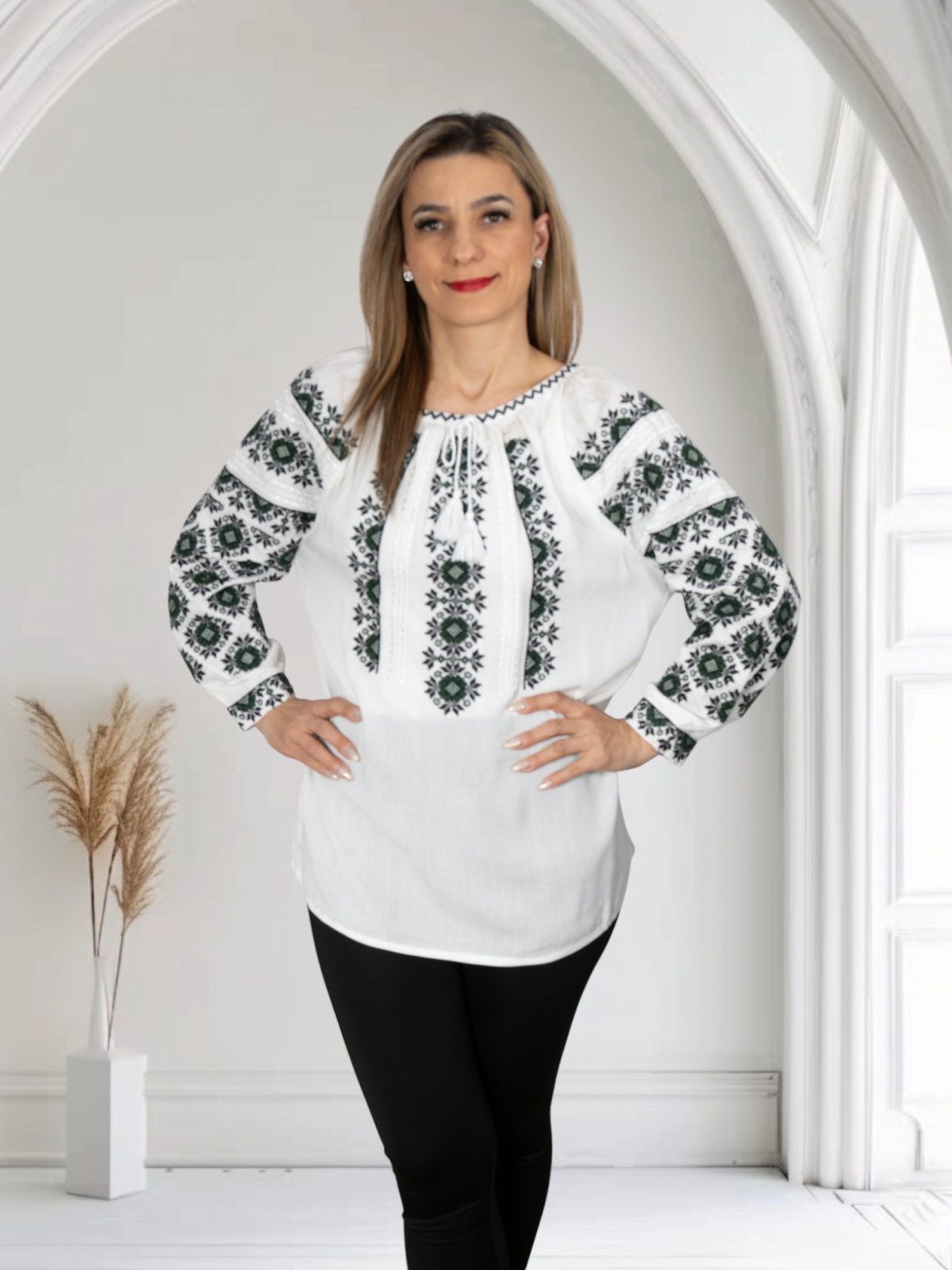 Culoare: alb cu broderie verde si negru