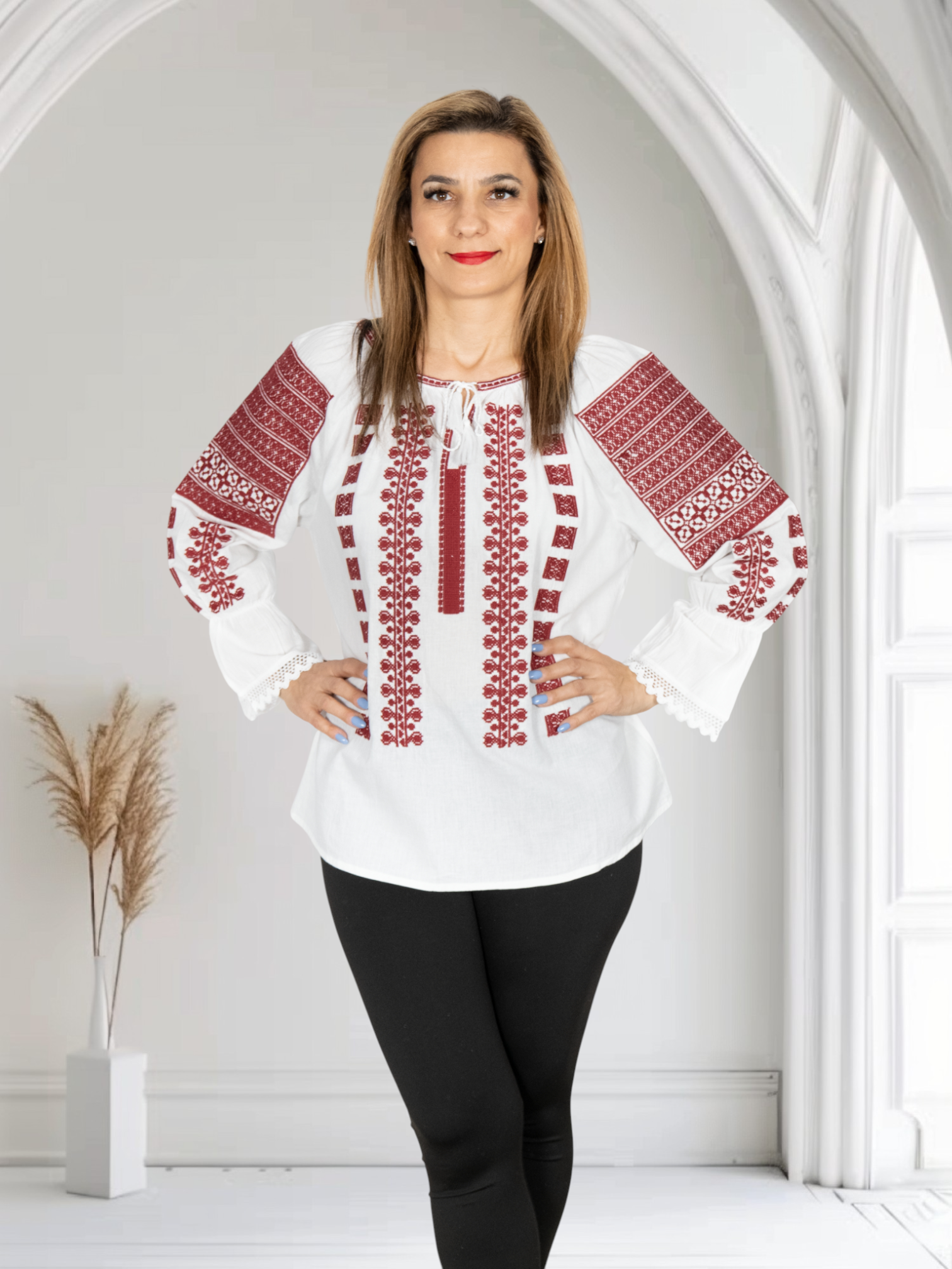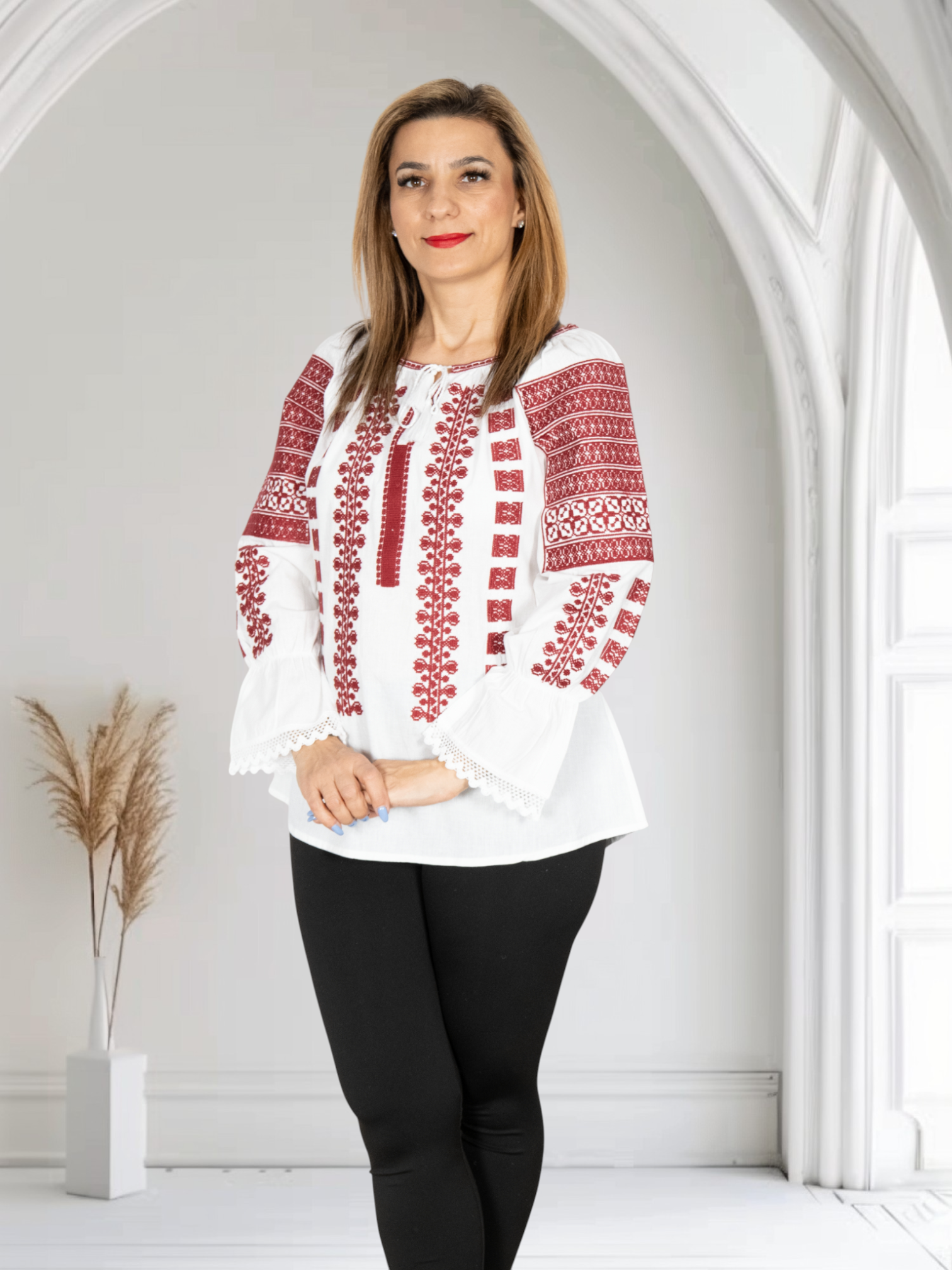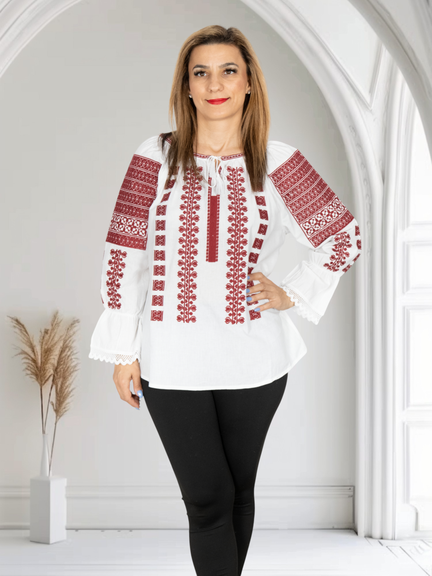 Culoare: alb cu broderie rosu