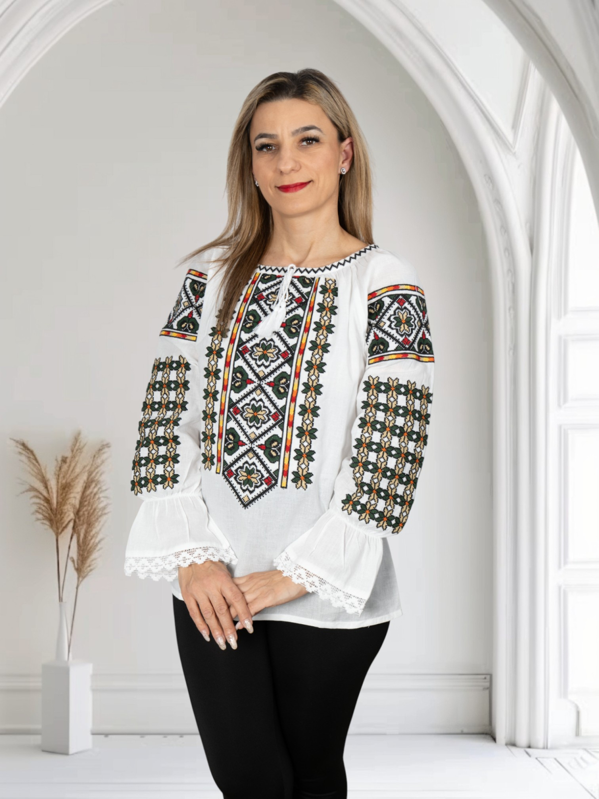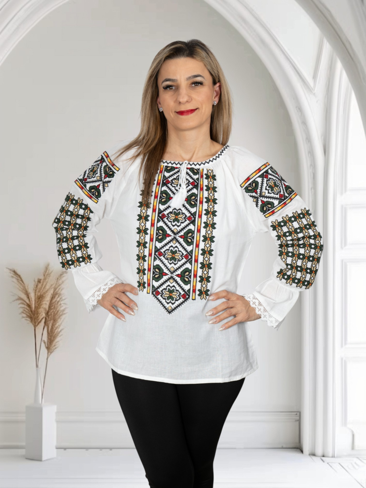 ✔️Ie din panza de bumbac 100%. Broderie cusuta la masina.