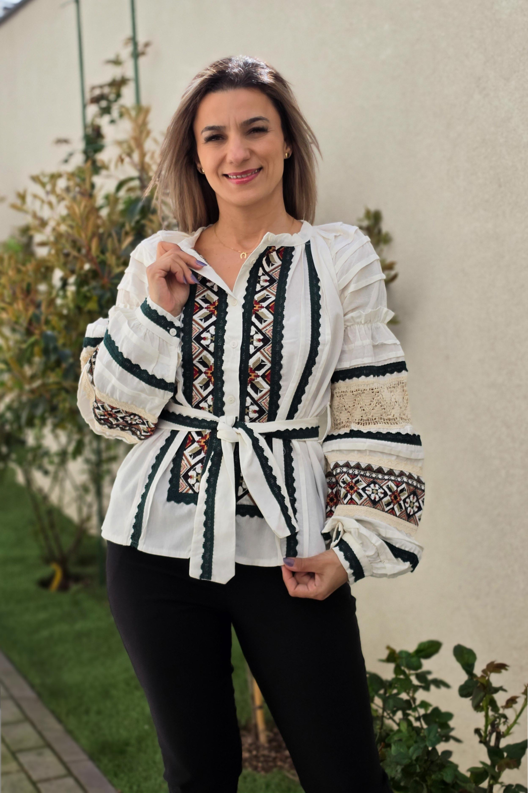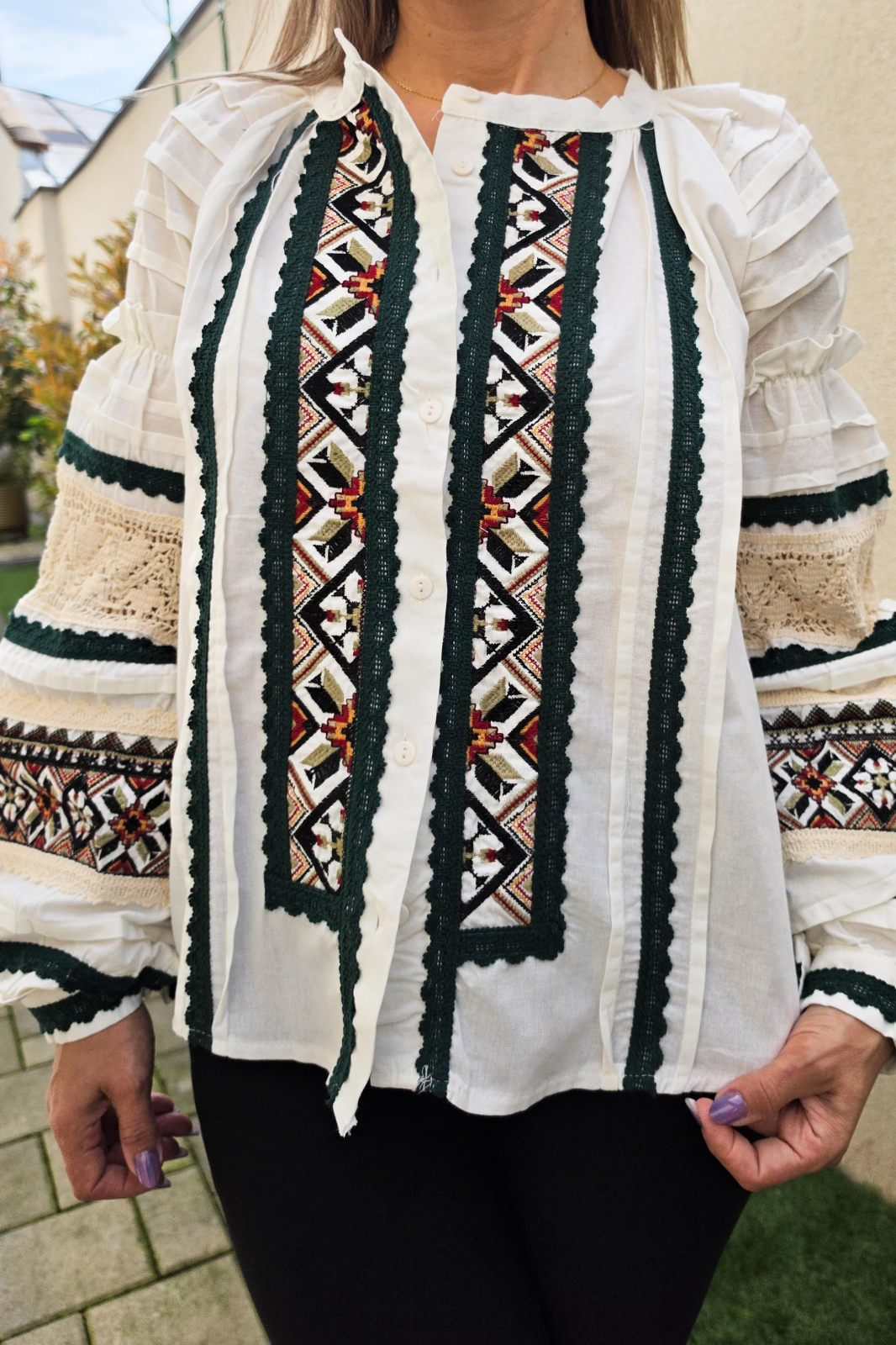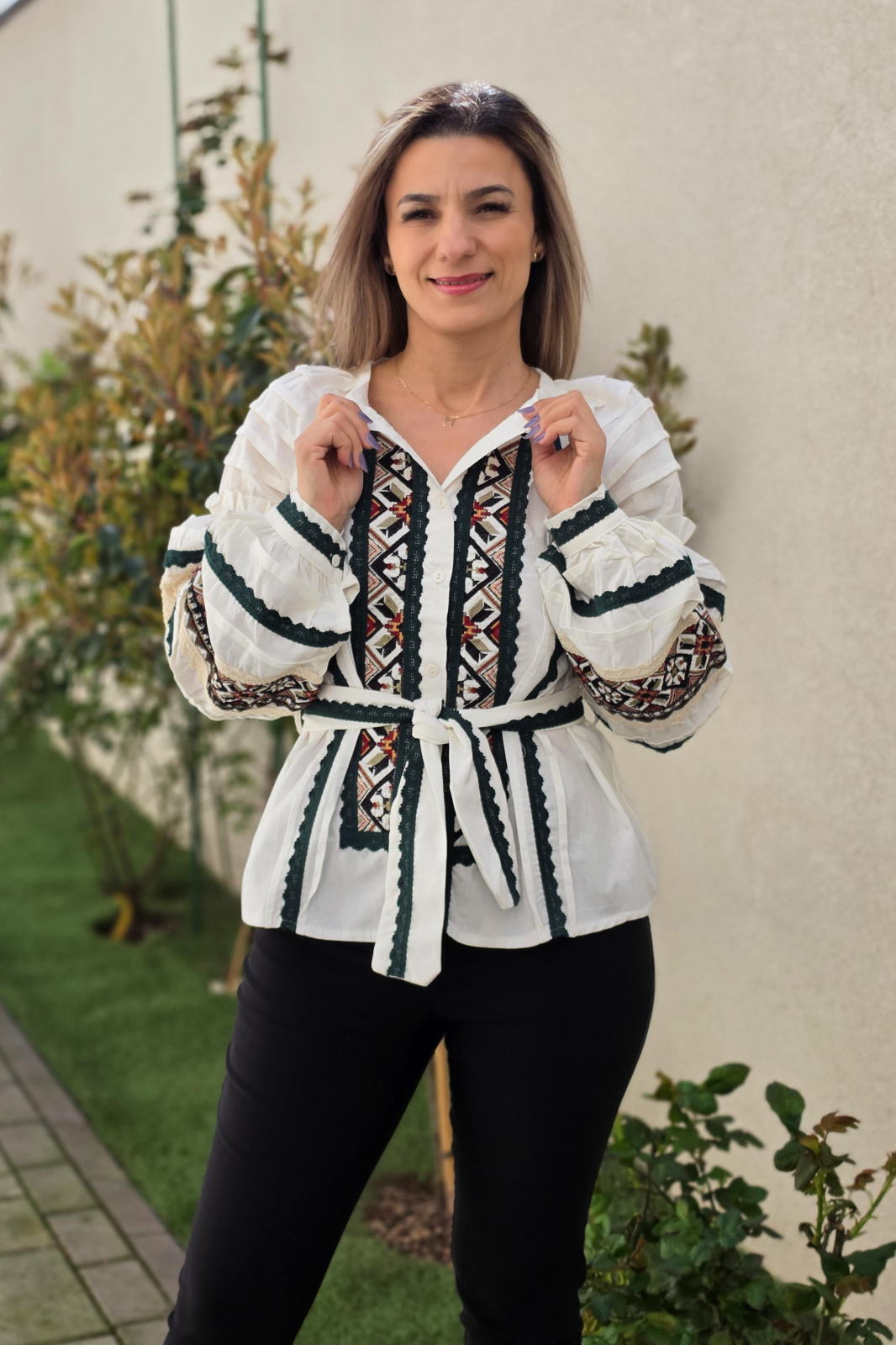 Culoare: alb cu broderie verde, rosu, crem si negru
