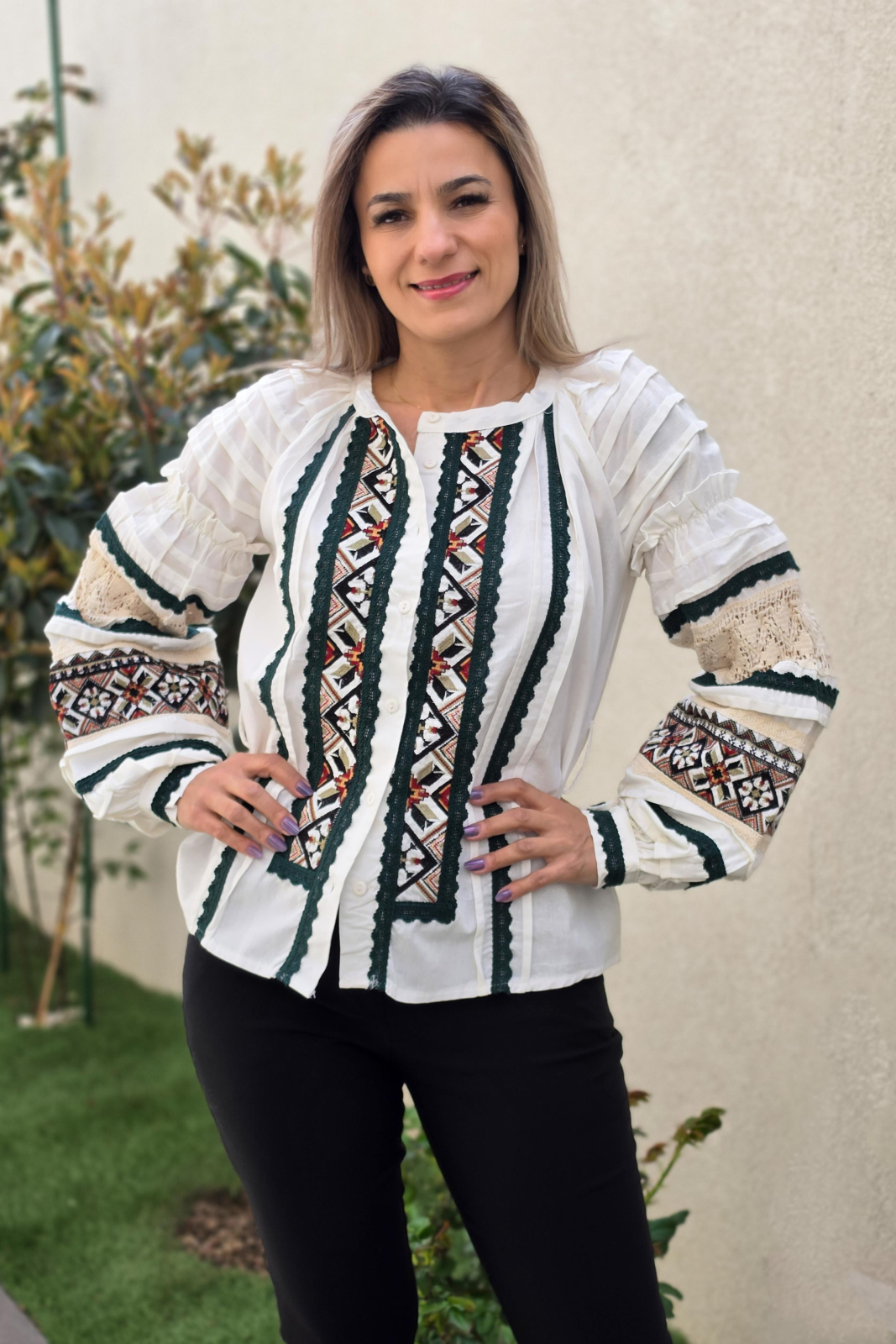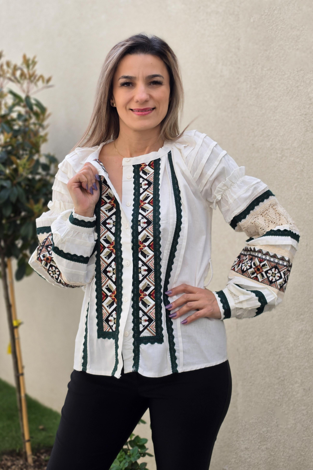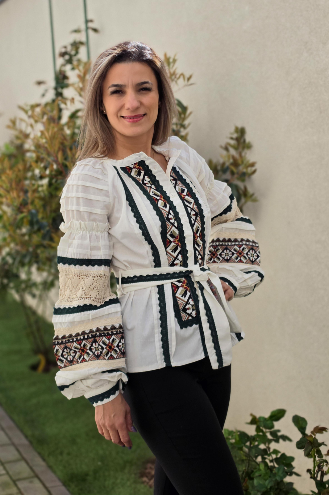 Culoare: alb cu broderie verde, rosu, crem si negru