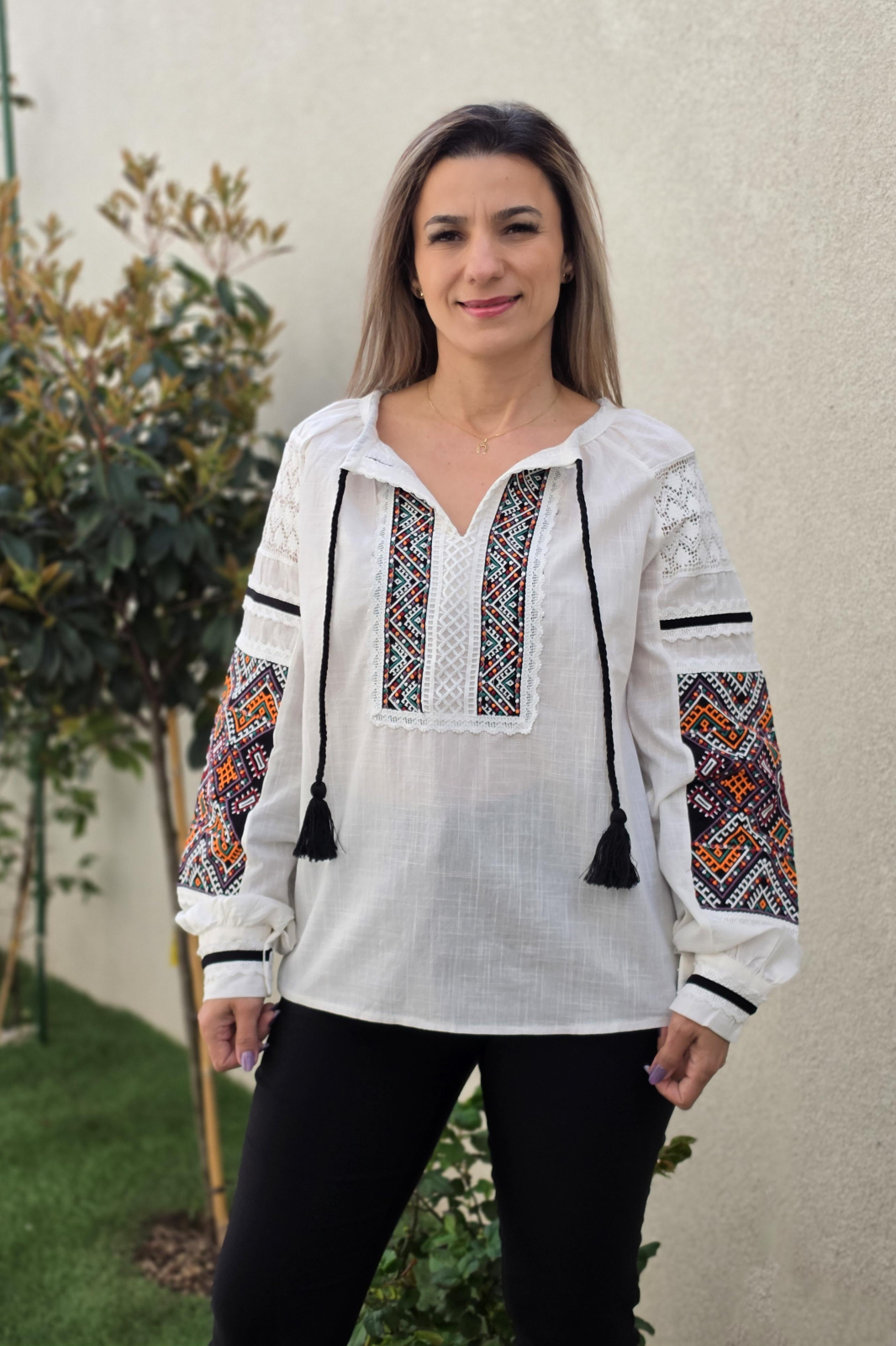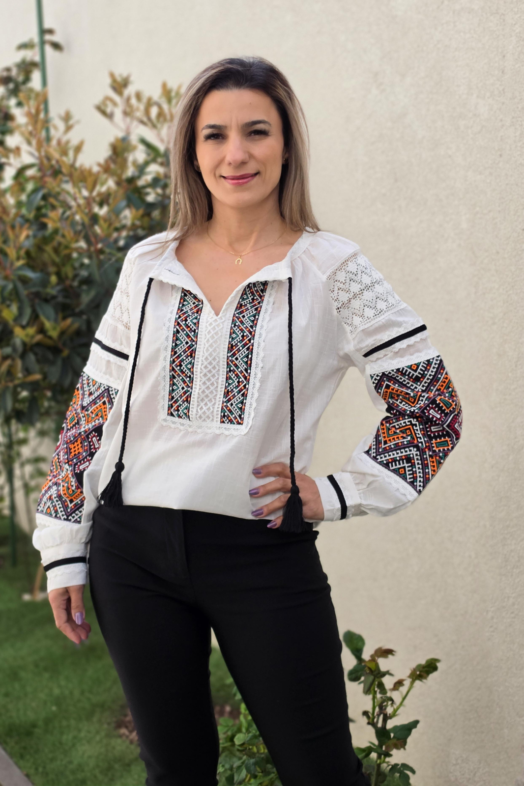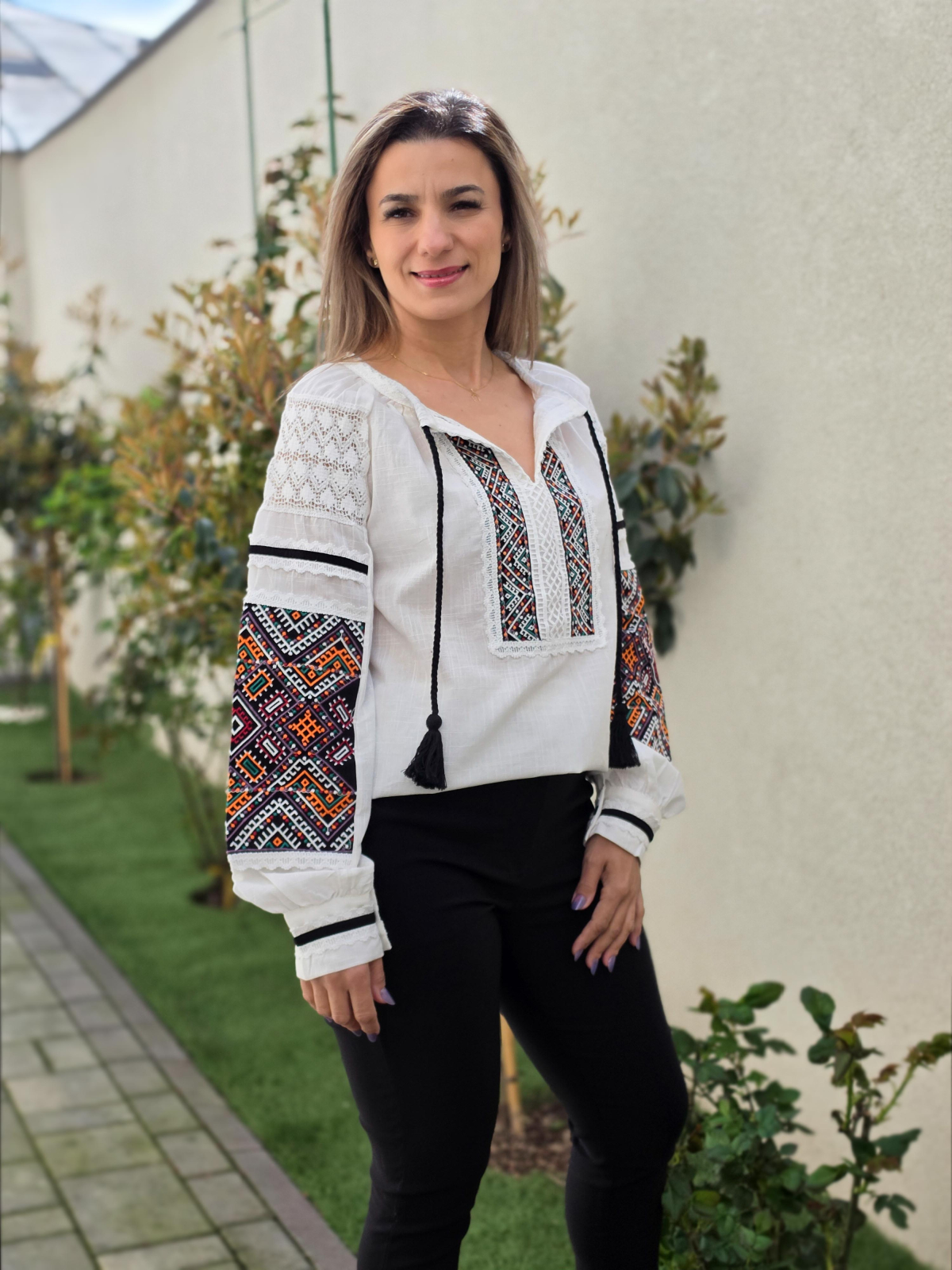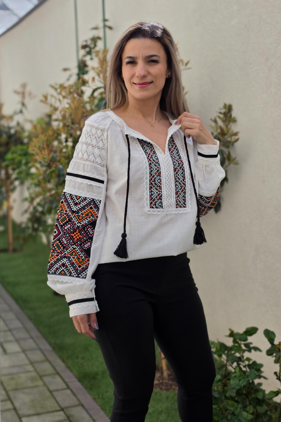 Culoare: alb cu broderie colorata