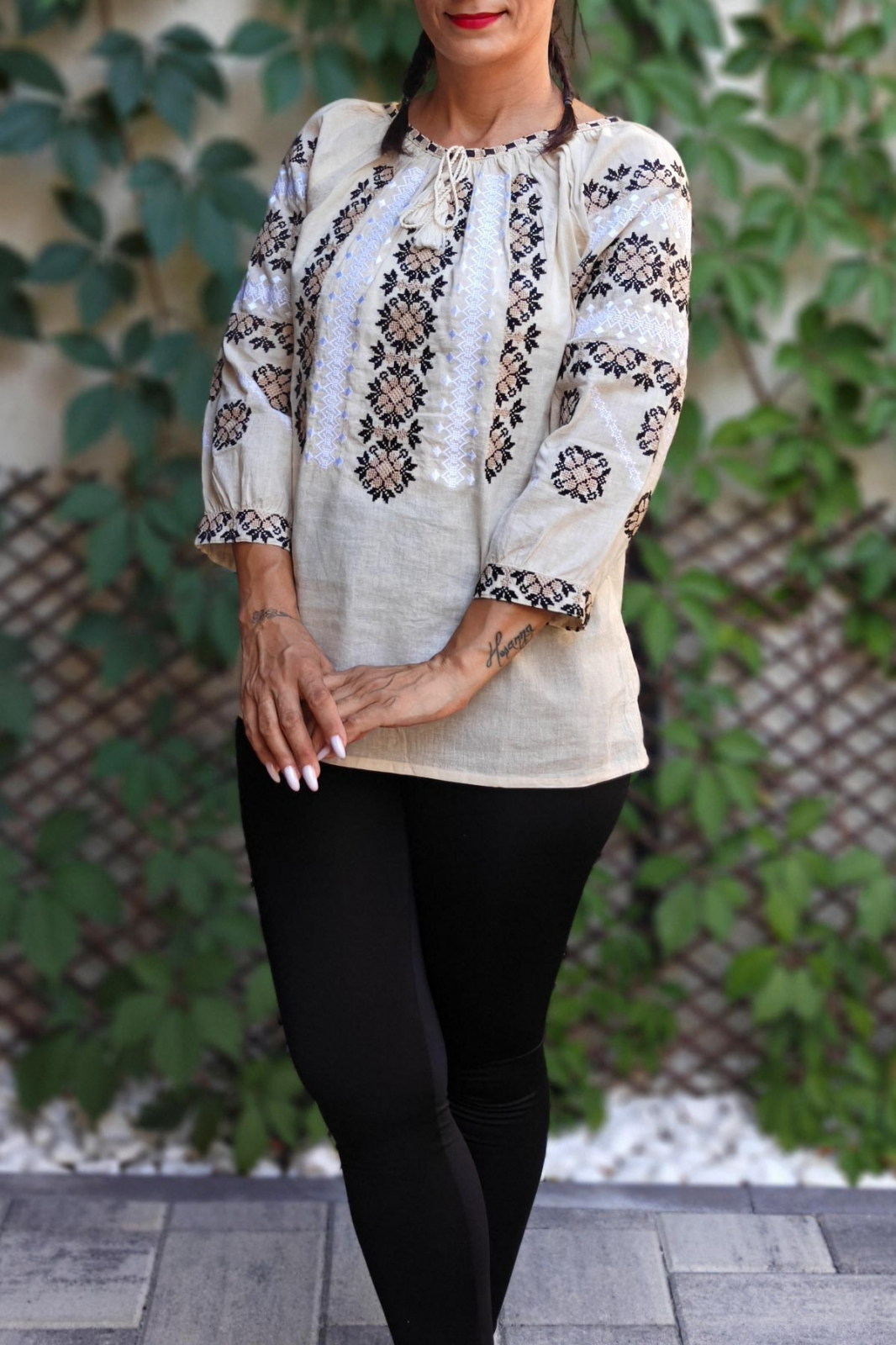 ✔️Culoare: Crem cu broderie neagra si alba