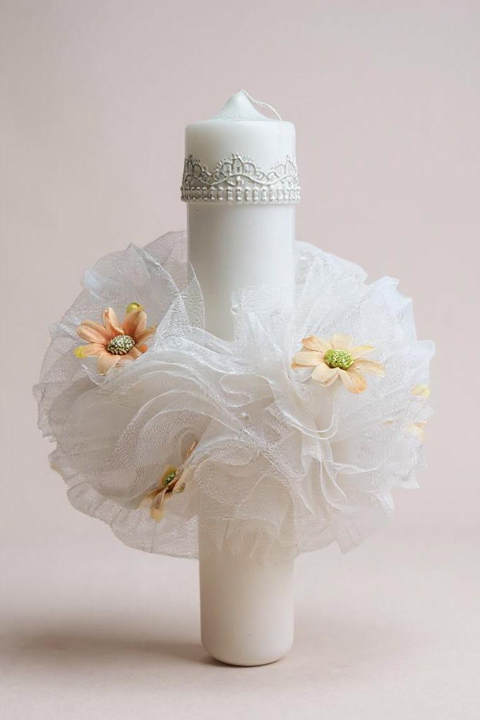Lumanare lucrata manual cu tull si funda satin, special creata pentru un Botez de basm,