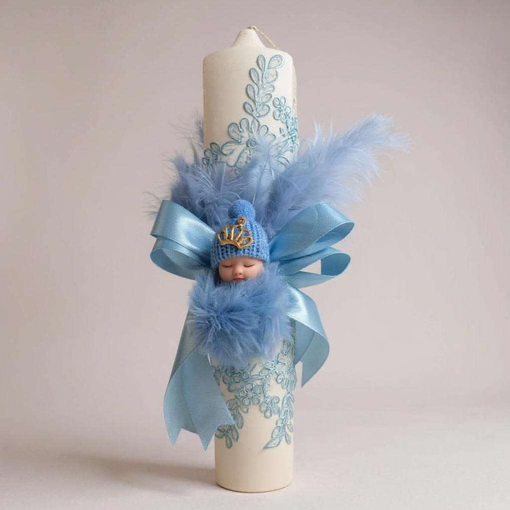 Banda cu tematica pentru botez ofera un plus de culoare parca imbracand un decor de poveste al unui eveniment de succes.  Ideala pentru home decor, aceasta lumanare este un cadou sau accesoriu unic pentru orice eveniment (nunta , botez, cununie, corner photo).