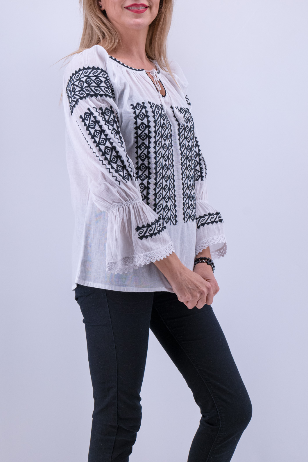 Culoare: alb cu broderie negru