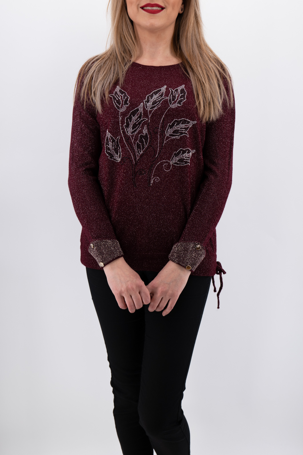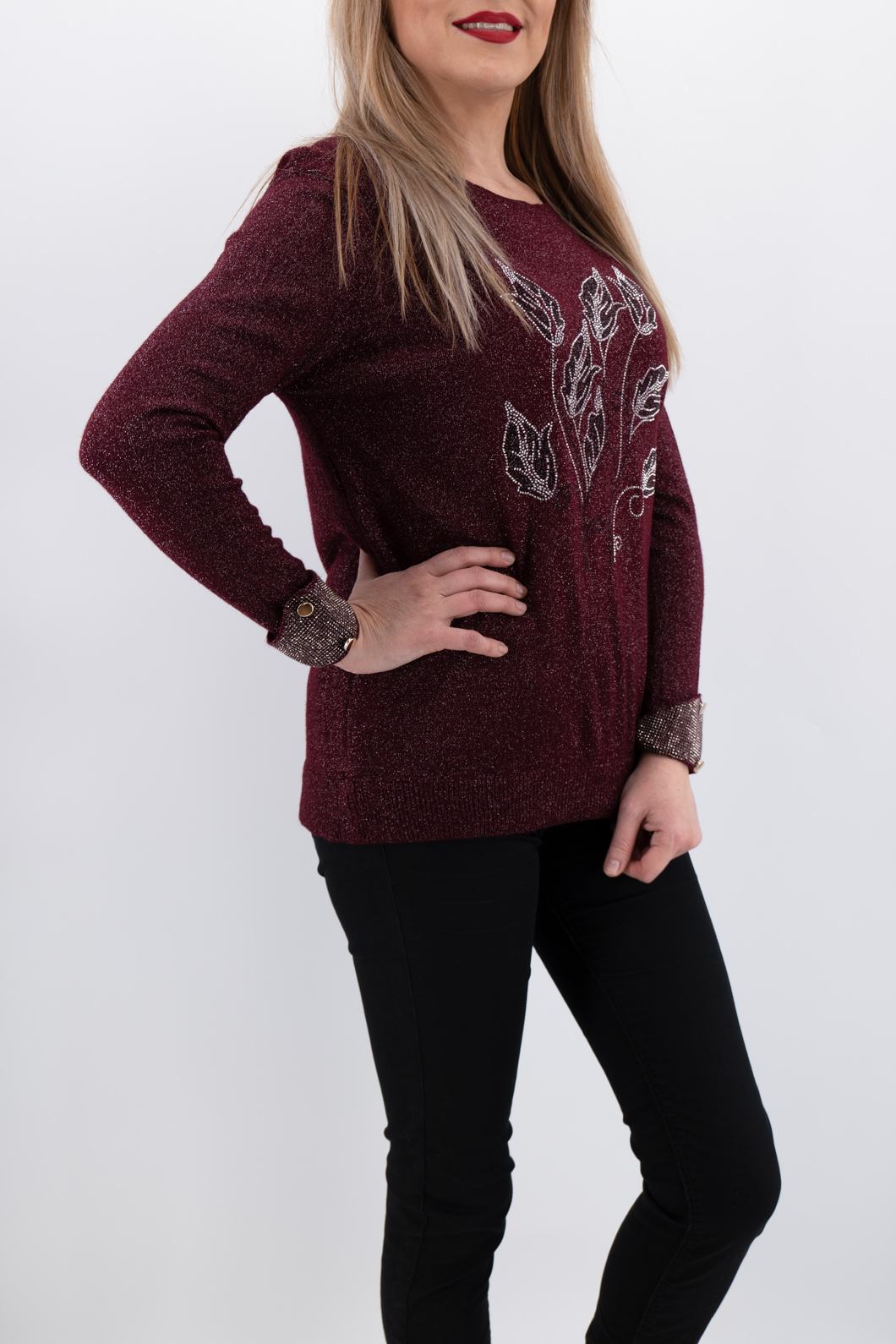 Pulover elegant din casmir, cu broderie cusuta la masina.