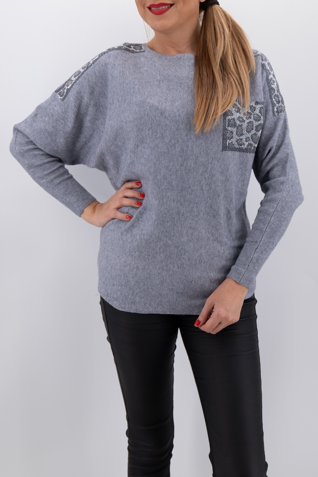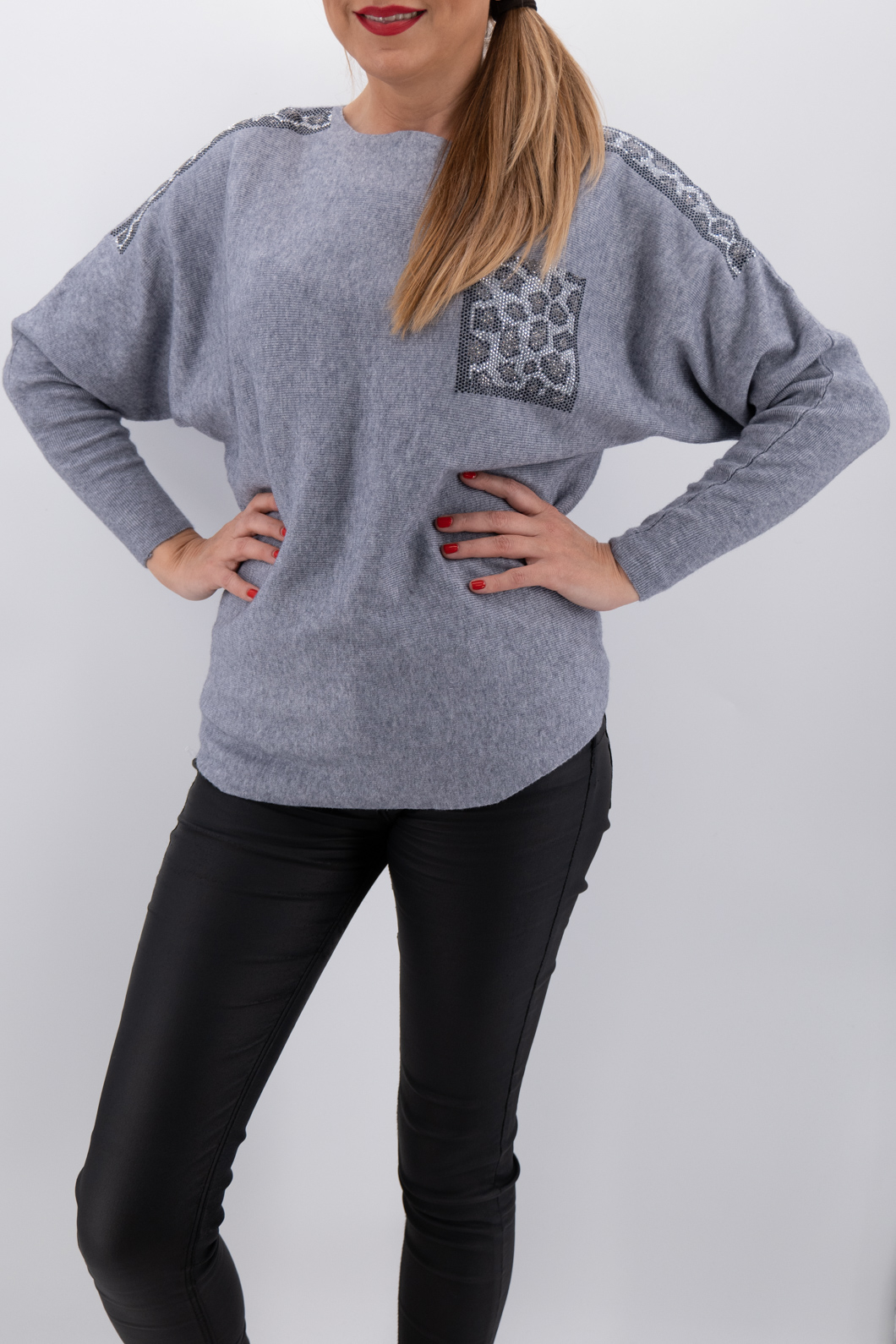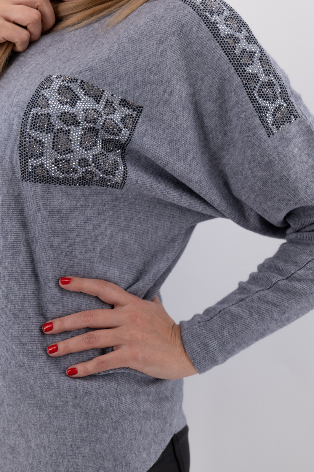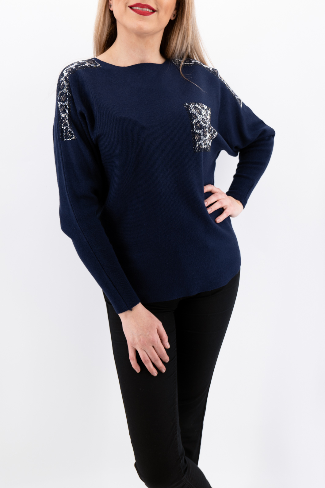 Pulover elegant din casmir, cu broderie cusuta la masina.