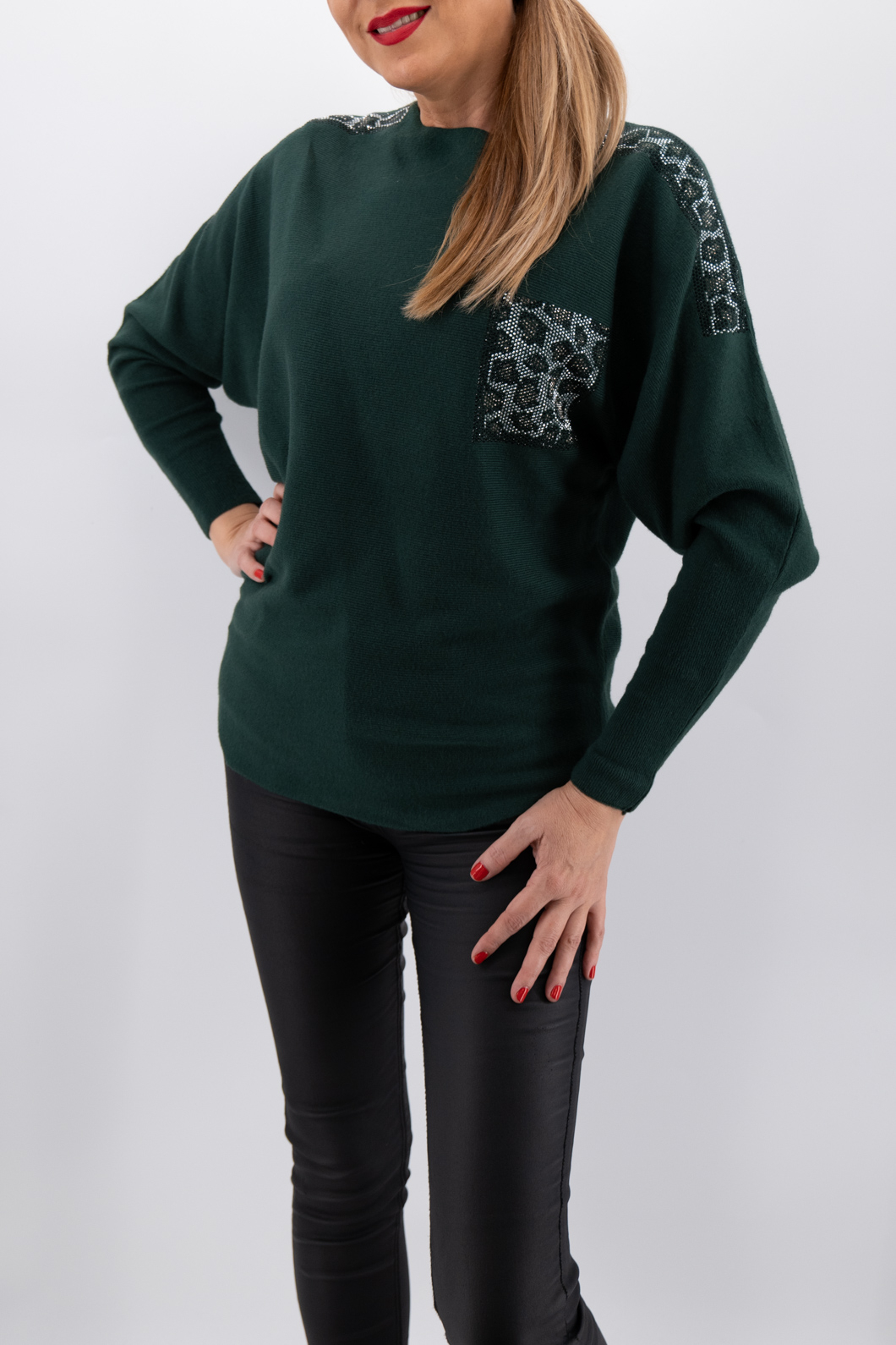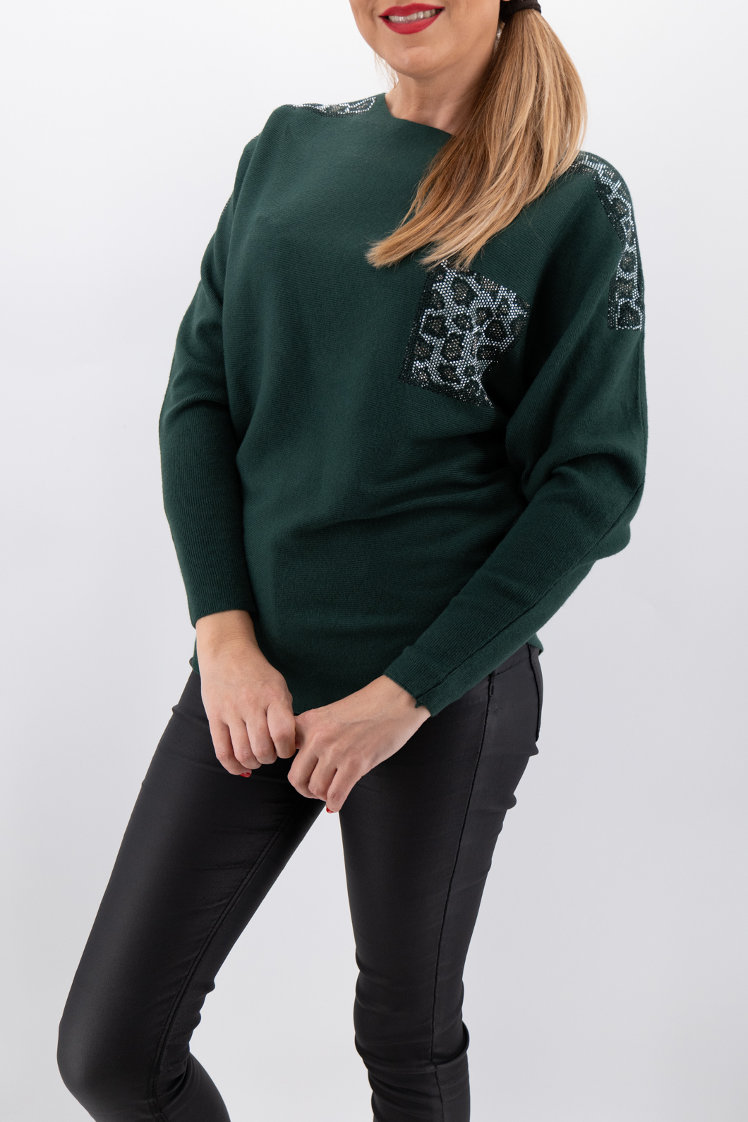 Pulover elegant din casmir, cu broderie cusuta la masina.