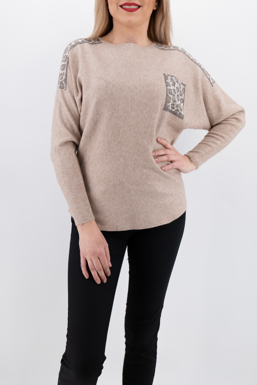 Pulover elegant din casmir, cu broderie cusuta la masina.