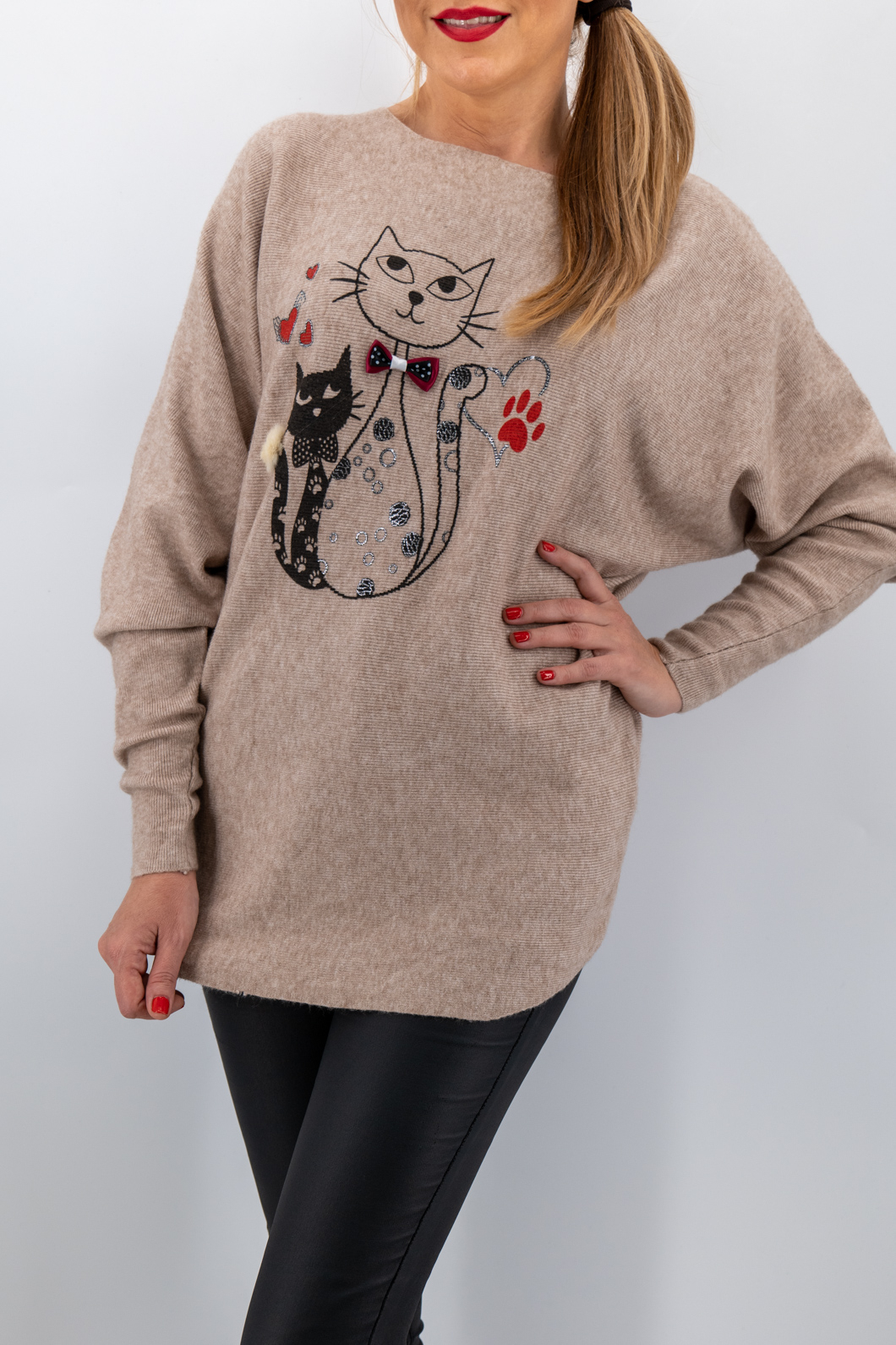 Pulover elegant din casmir, cu broderie cusuta la masina.