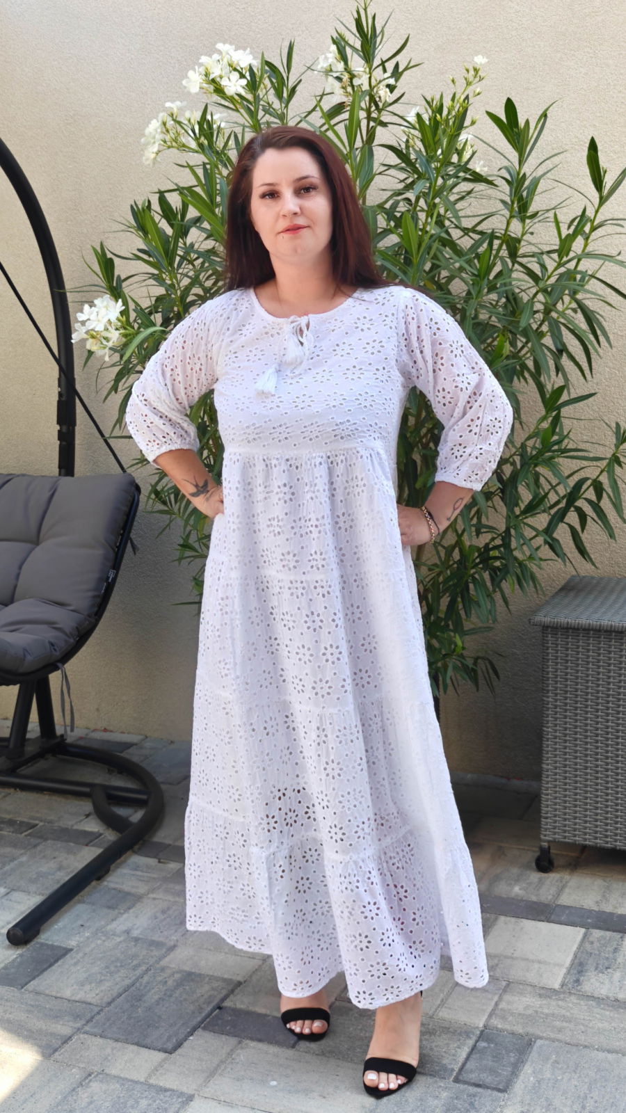 Culoare: alb cu broderie alba