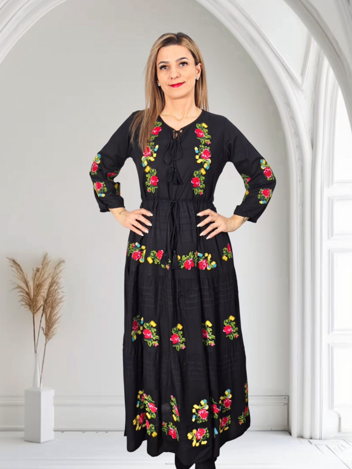 Rochia este dublata cu maneca lunga. Rochie lejera la purtat.