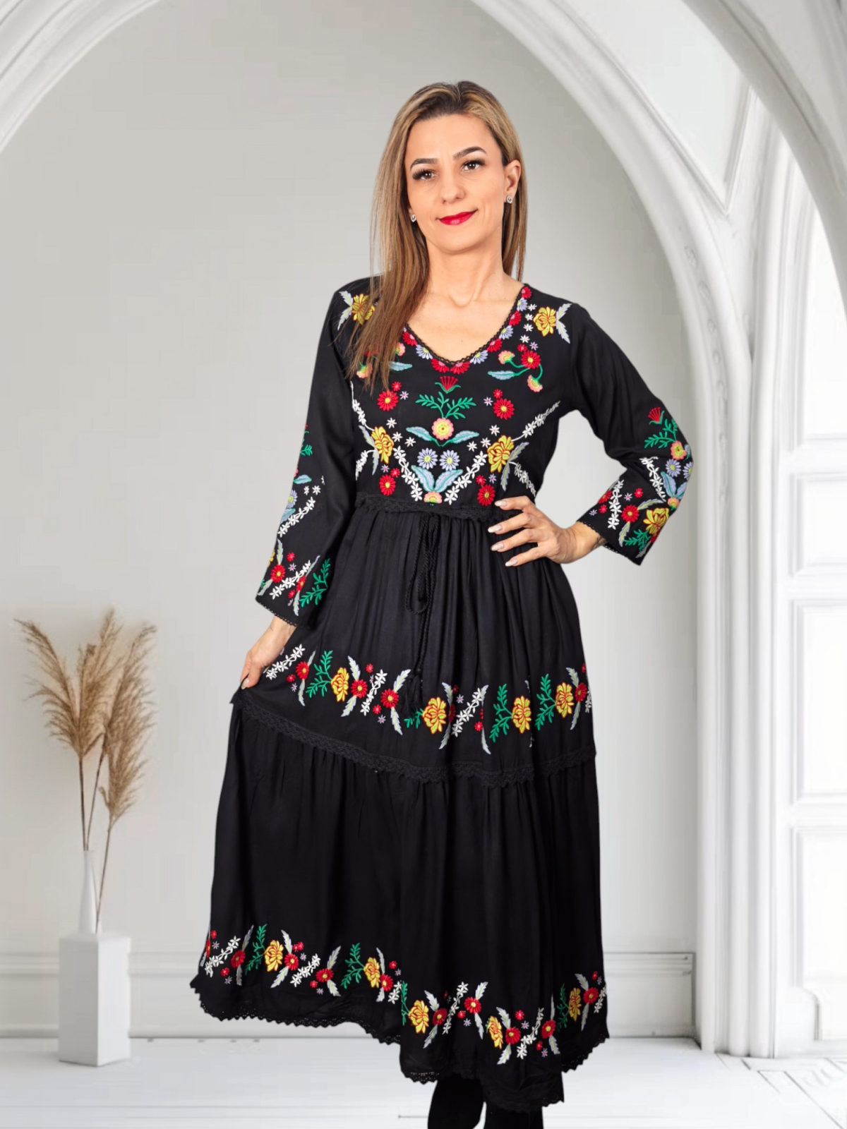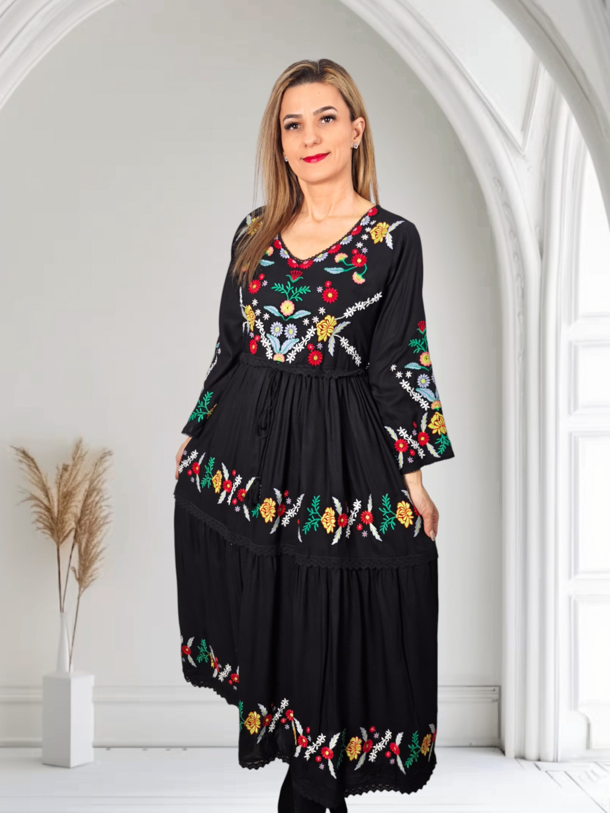 Rochia este dublata cu maneca lunga. Rochie lejera la purtat.