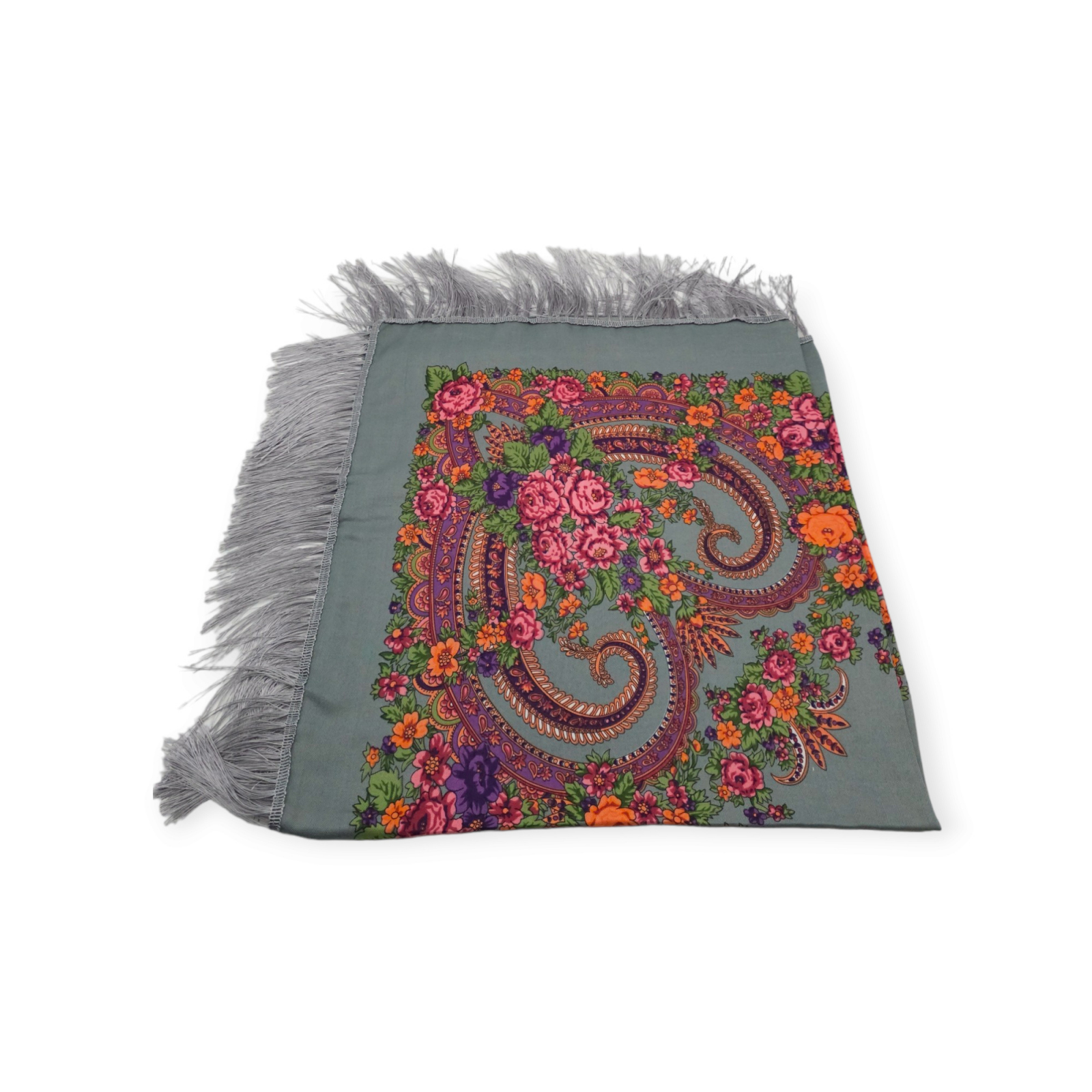 Batic/Esarfa mare din vascoza si franjuri din matase cu imprimeu etno.