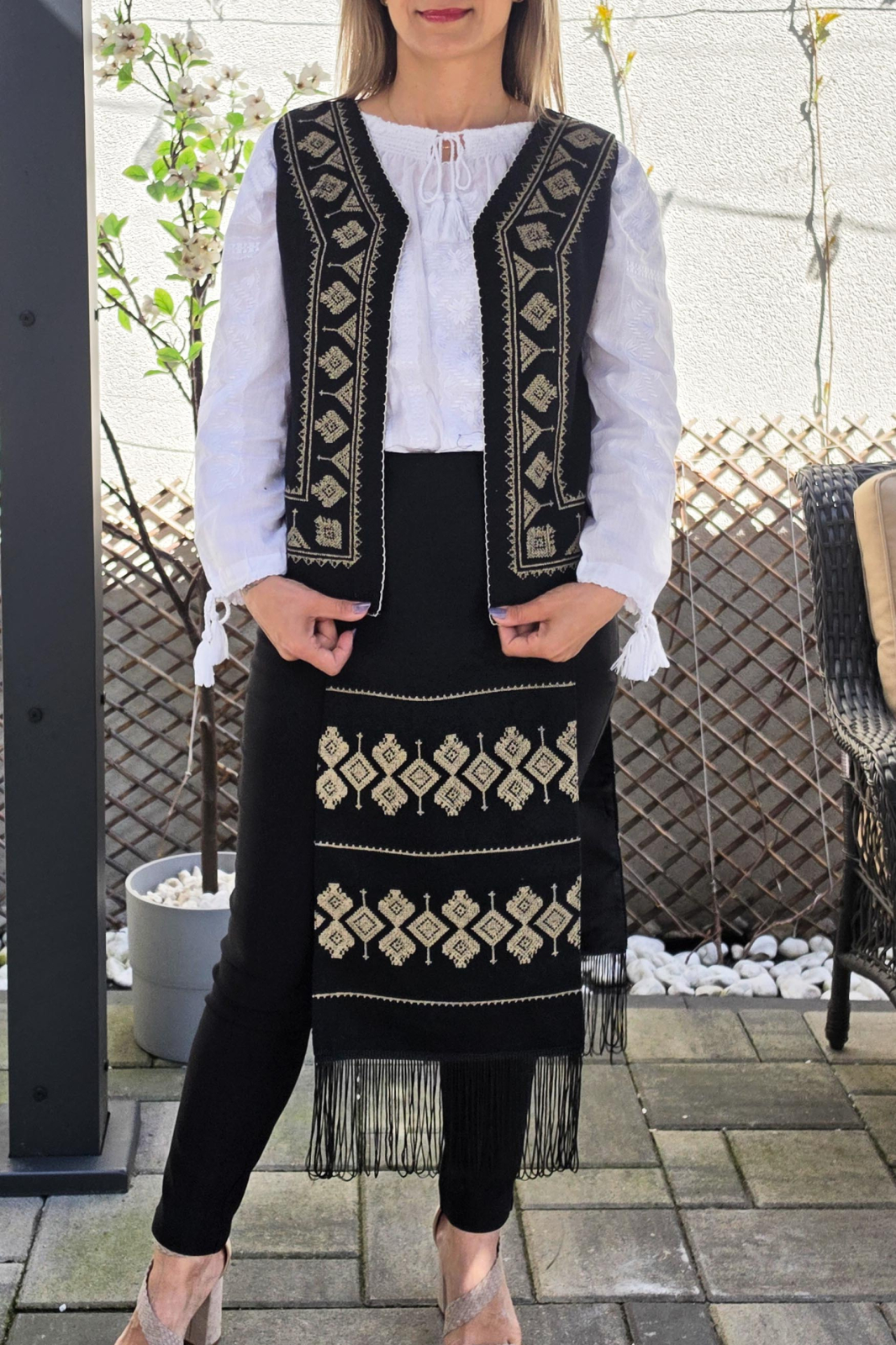 Set Vesta si 2 Fote brodate cu model traditional.