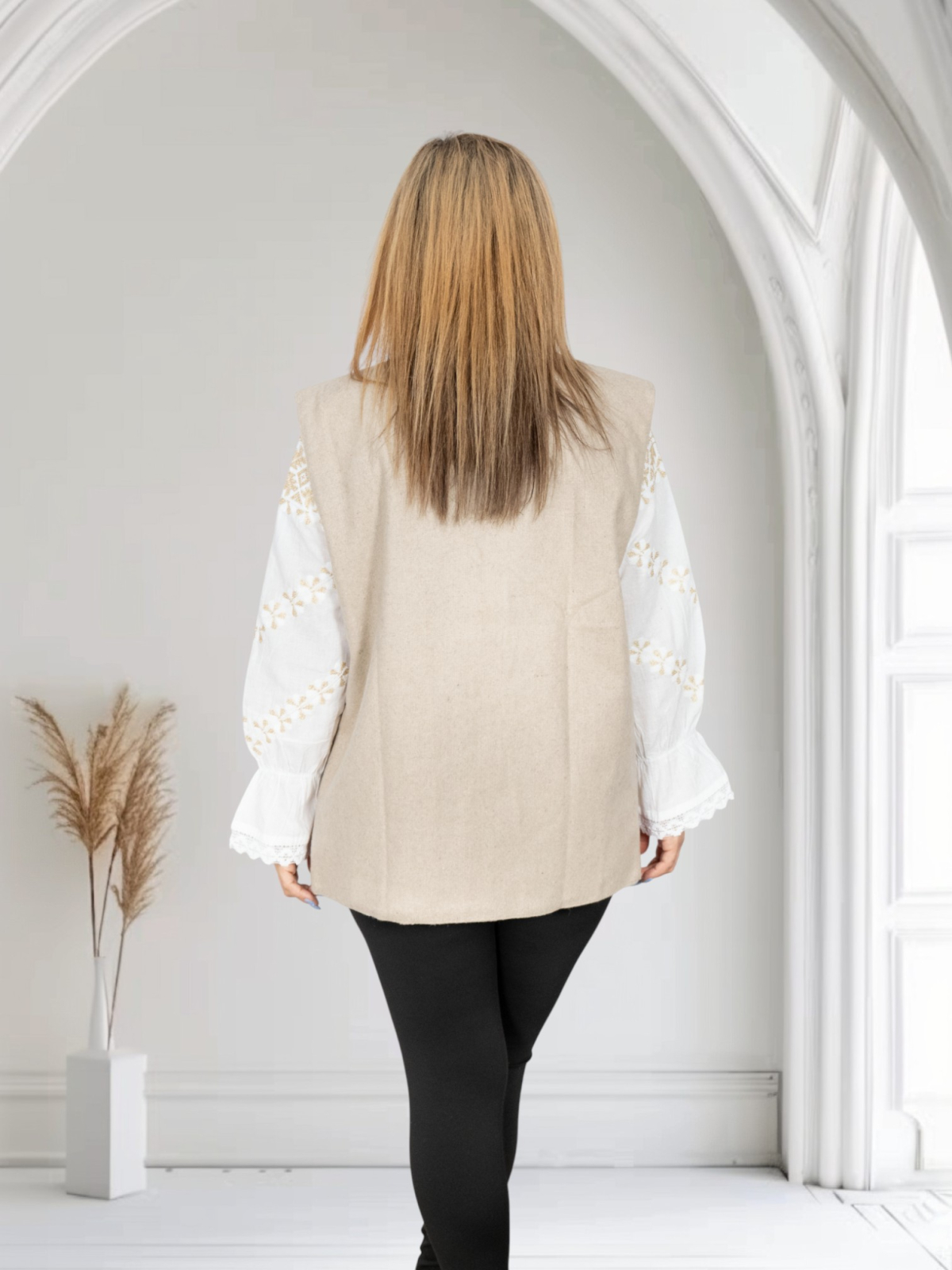 Modelul din imagine are 170cm, 60kg, 92cm in bust si poarta masura S.