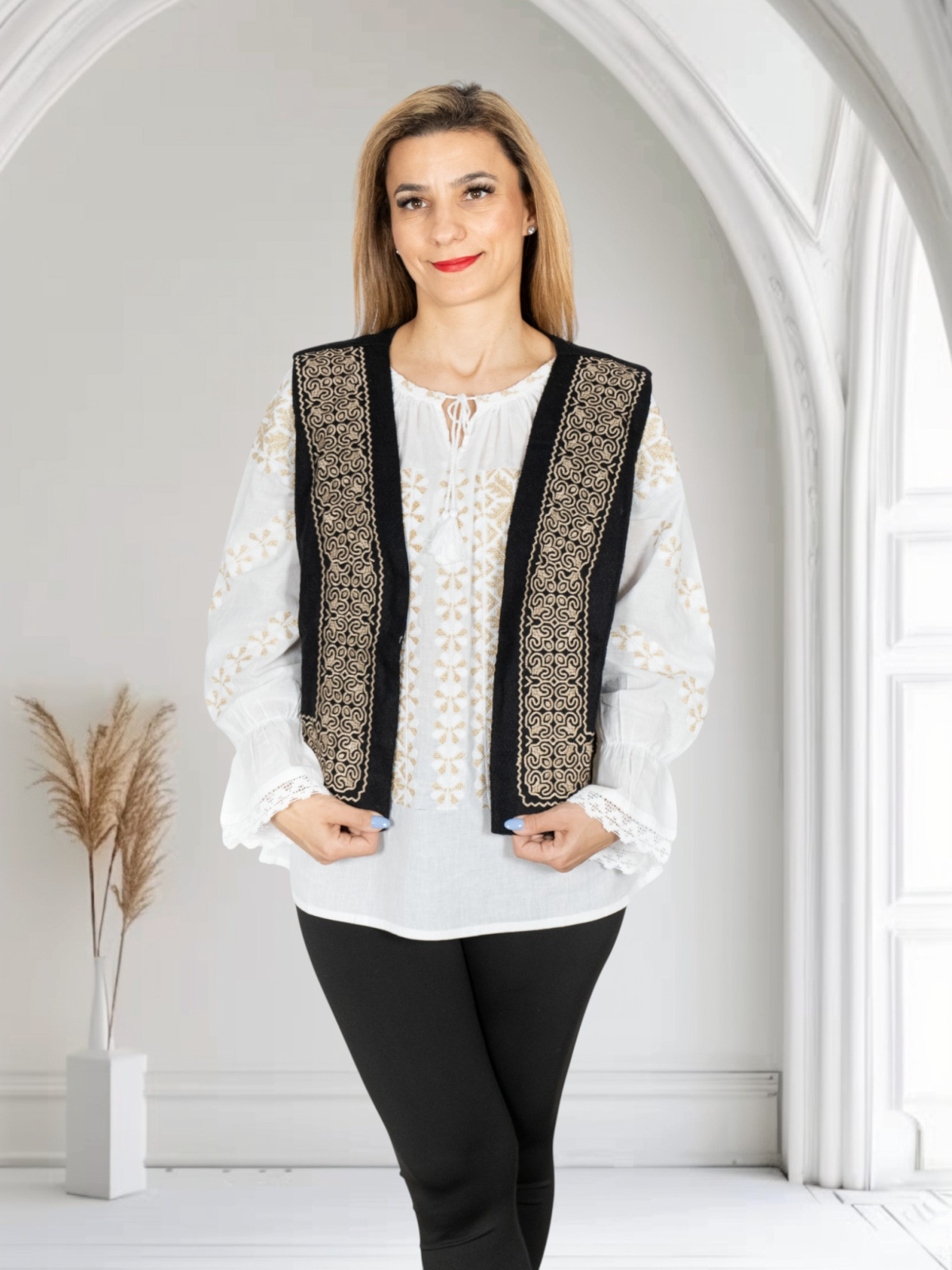 Modelul din imagine are 160cm, 57kg, 90cm in bust si poarta masura S.